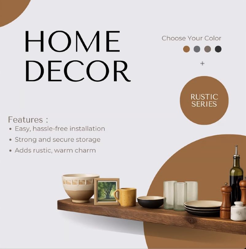 - Elevate Your Space with Rustic Charm: Transform your living room or any space with our large floating shelves for wall. These 54 inch floating shelf beauties, crafted from natural wood, add a touch of rustic warmth and provide ample display space for your cherished items.