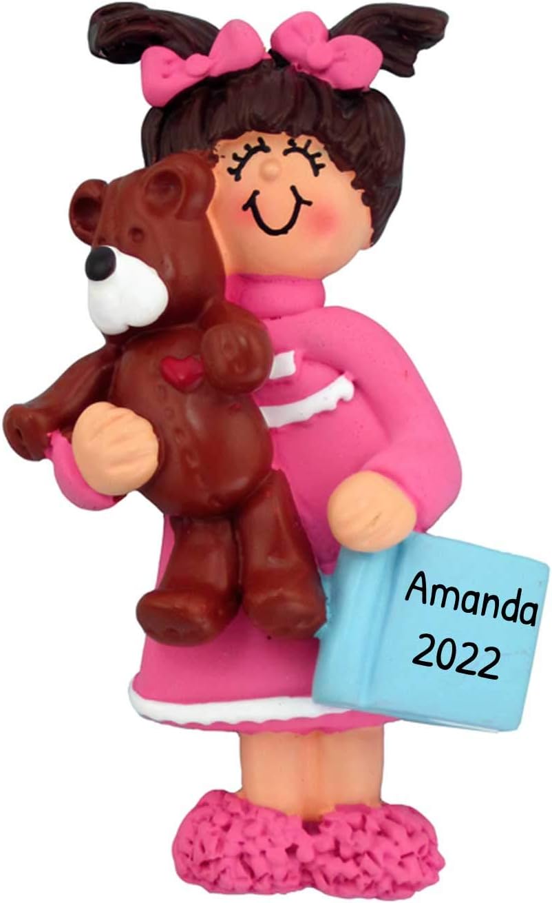 Personalized Child Christmas Tree Ornament - Toddler Pajamas Sleep Time Story Book Reader PJs Lover Kid - Free Customization