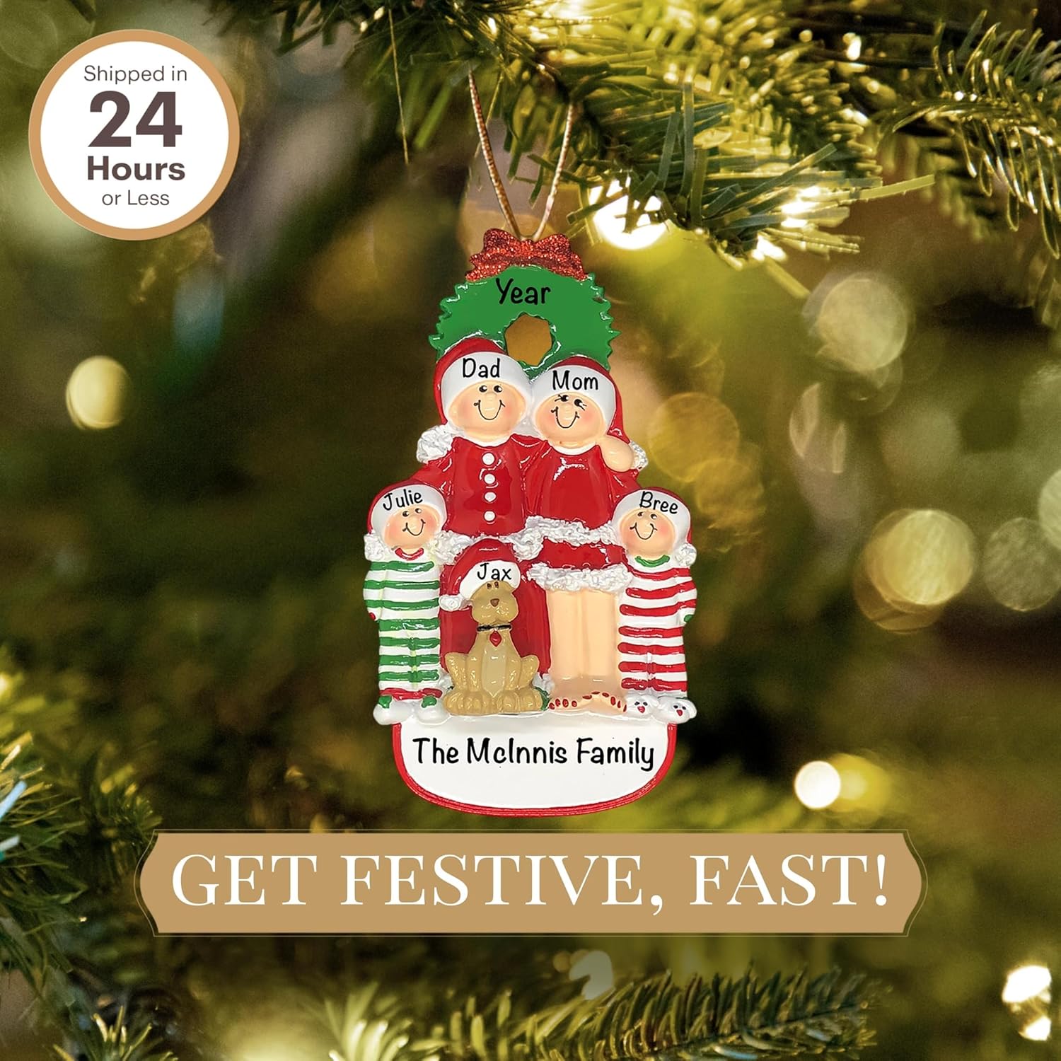 Personalized Family of 4 with Dog Ornament 2025 | Free 24h Customization | Christmas Ornaments for Tree | Custom Gift Wrapped Pet Keepsake for Dog-Lovers