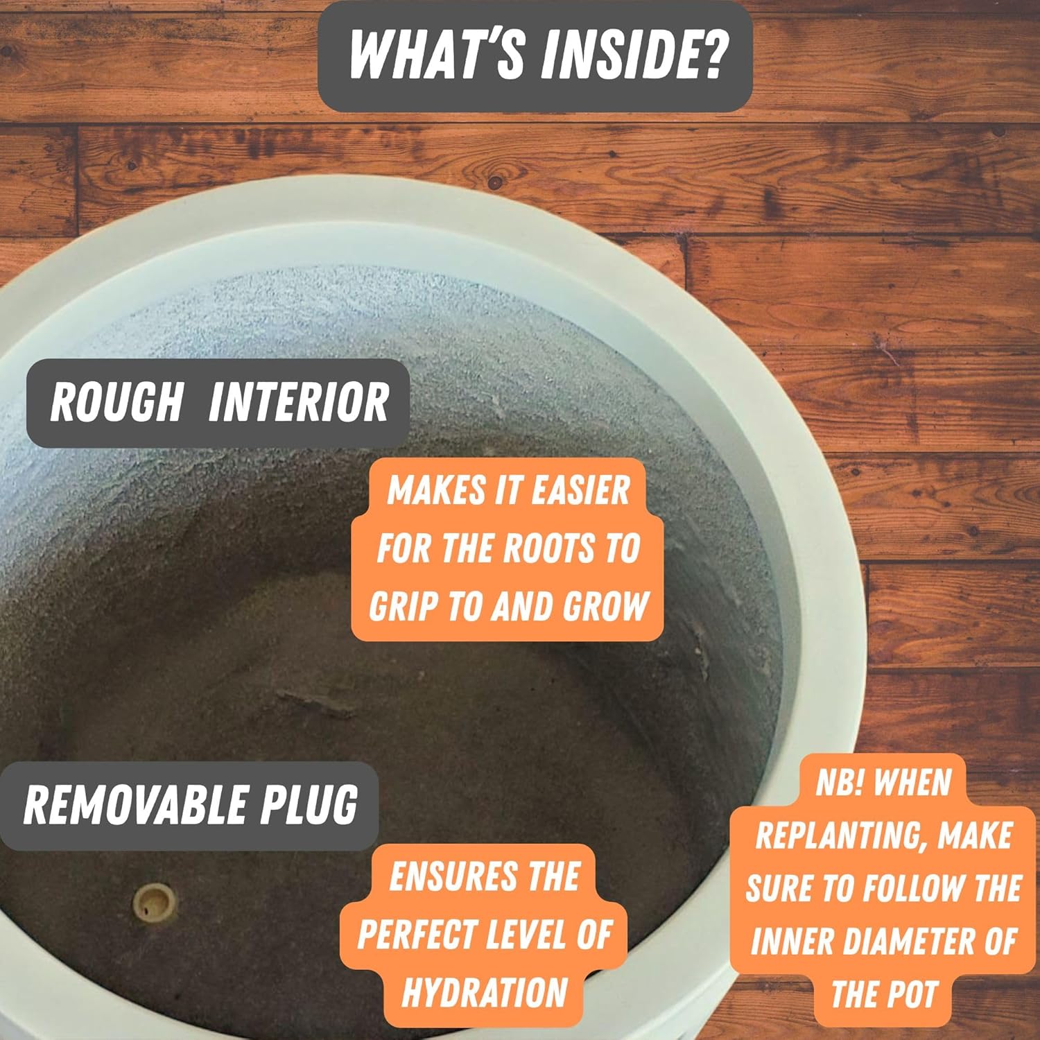 - PERFECT LEVEL OF HYDRATION – These extra large planters have a convenient drainage hole to allow excess water to flow out. The pots also come with a plug that you can easily remove and attach, offering the plants a perfect level of hydration.