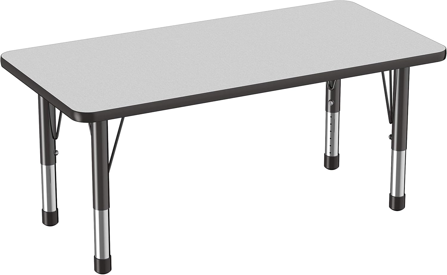 FDP Rectangle Activity School and Kids Classroom Table (24 x 48 inch), Toddler Legs, Adjustable Height 15-24 inches - Gray Top and Black Edge