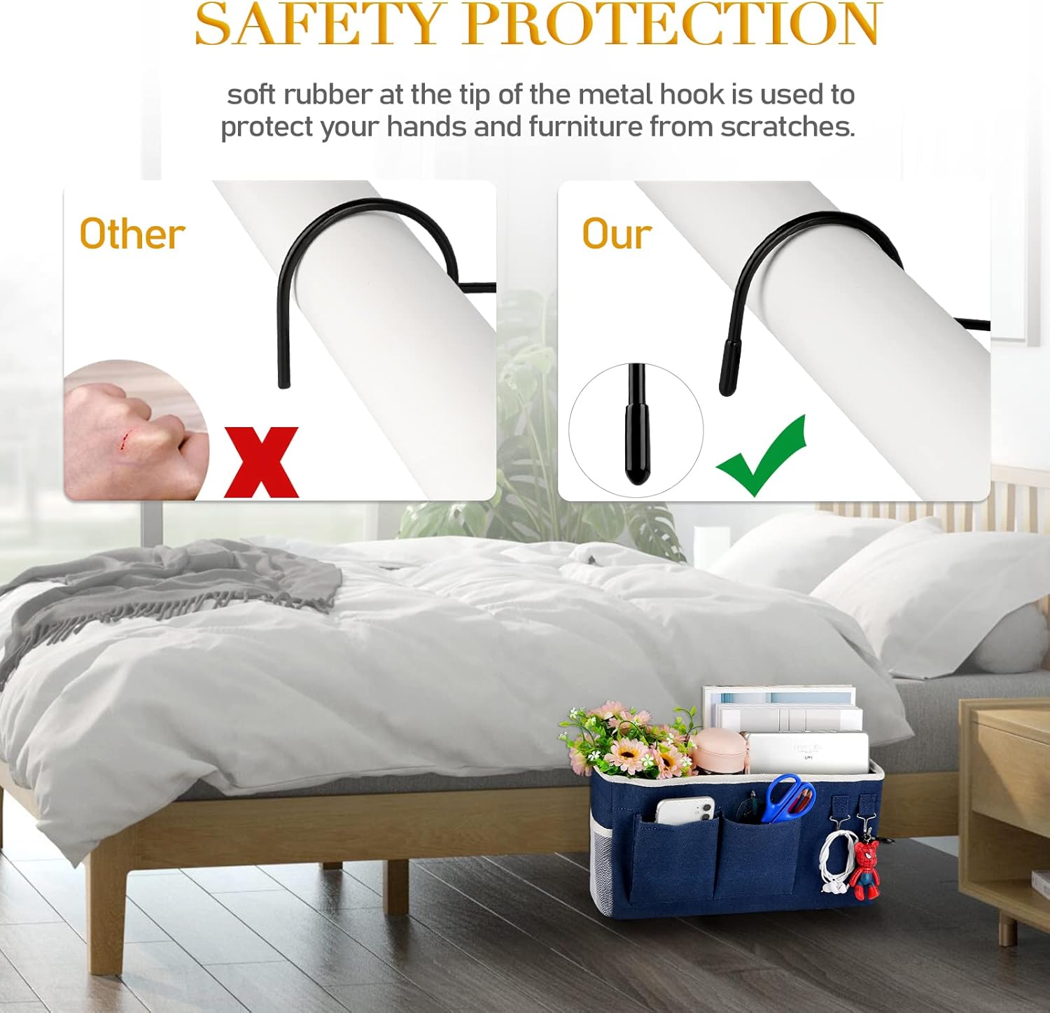 - ăFull-scale EncirclementăUnlike other similar bedside storage bag where only part of the iron frame is covered, the metal frame on the top and inside of our bedside pocket caddy is completely covered. The whole bag is fixed to prevent tilting and is more stable and enduring.