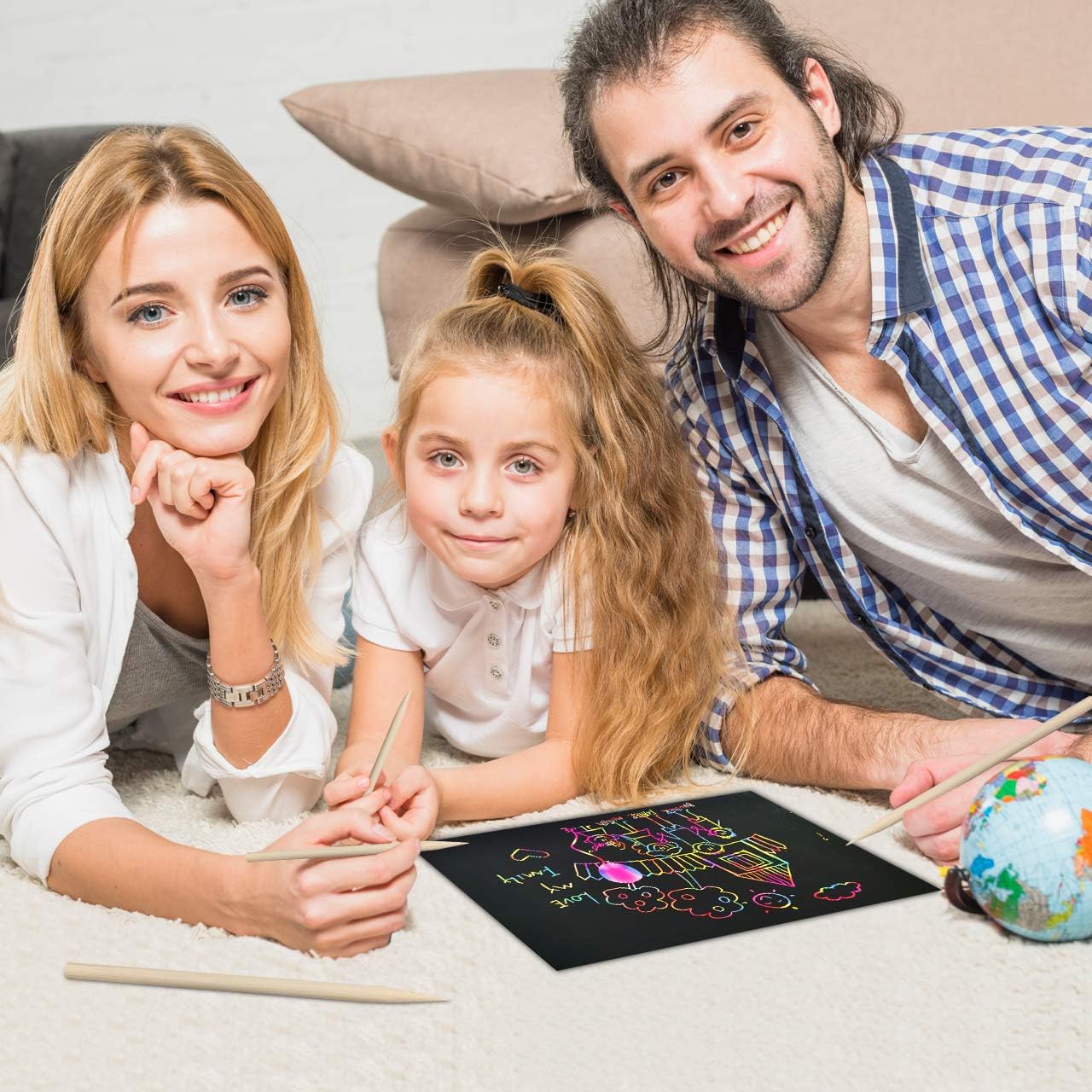 - Great Value Scratch Paper Art Set: Scratch magic paper come with 50 sheets scratch sheets and 50 wooden stylus. You can use the stylus to scratch away to reveal the beautiful rainbow background. Let kids make outstanding handmade artworks, and keep boys and girls busy with fun DIY kids art set