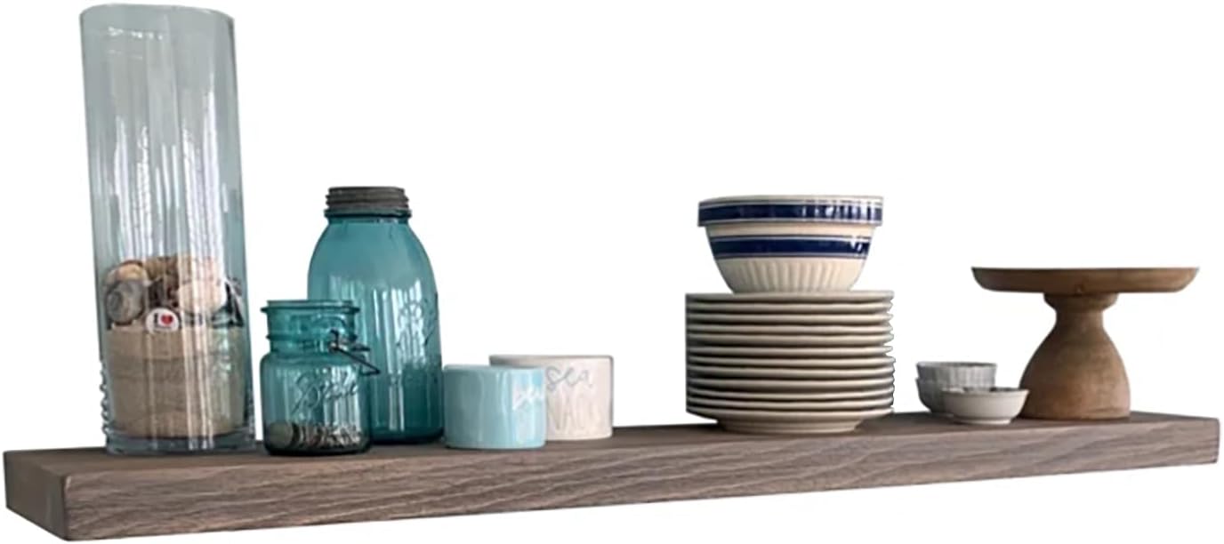Joel's Antiques - 48 Inch Wooden Floating Shelves for Wall - 48x8x2 in - Made of Natural Wood - Long Heavy Duty Wall - Made in USA - Perfect for Living Room, Kitchen - Grey