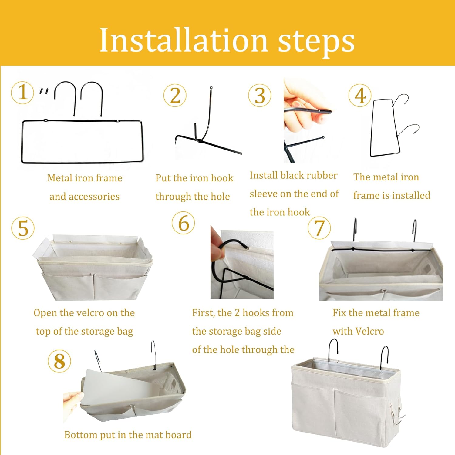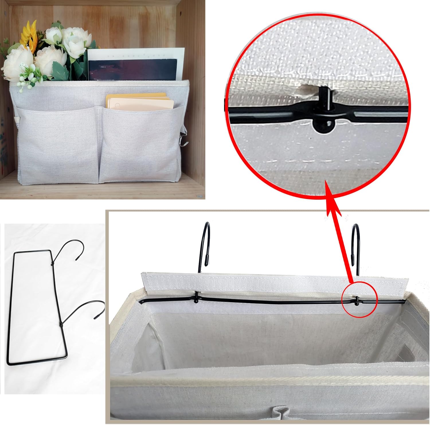 - ăOur AdvantagesăThe top of our bedside organizer bag is designed with full wrapping around the top, the iron frame is firmly fixed in the inner side of the Velcro, which is not only more beautiful but also better stability, and equipped with a base plate, the whole is more solid, strong load-bearing capacity, not easy to be deformed.