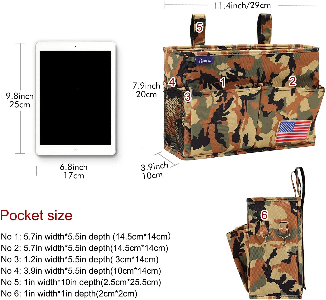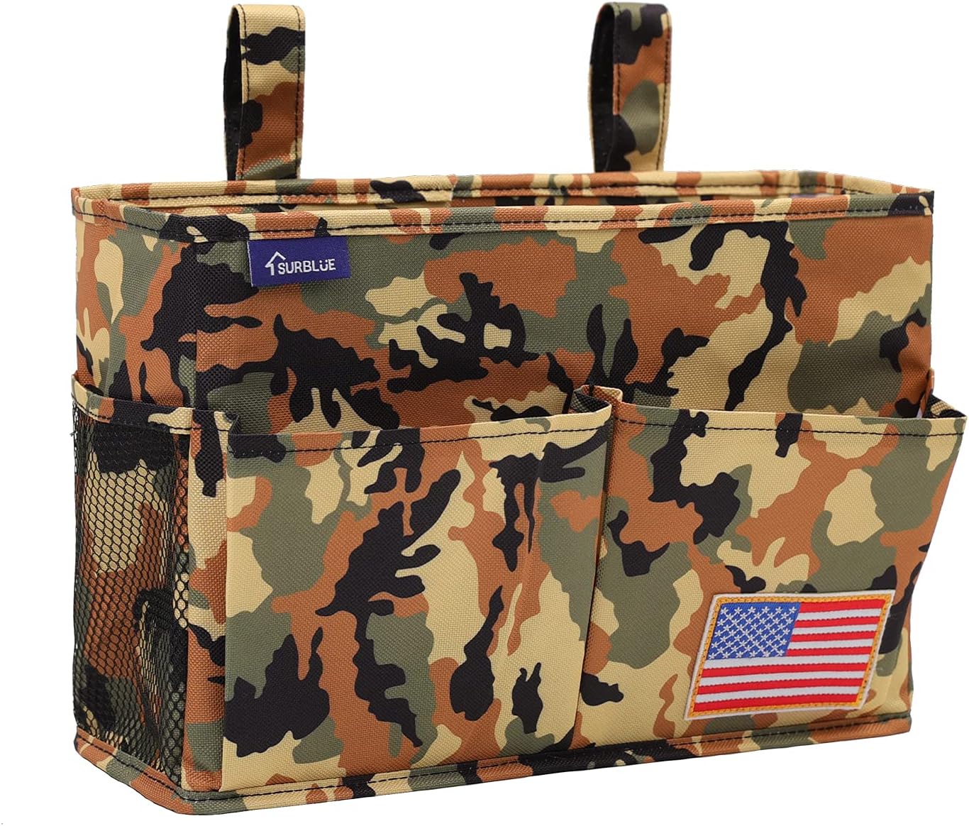 Surblue Bedside Caddy Hanging Organizer Storage Bag Pocket for Bunk, Hospital Beds, College Dorm Rooms, Baby Bed Rails, Wheelchair Side Bag, Camp Chairs, 4 Pockets and 2 Hooks (Small Desert)