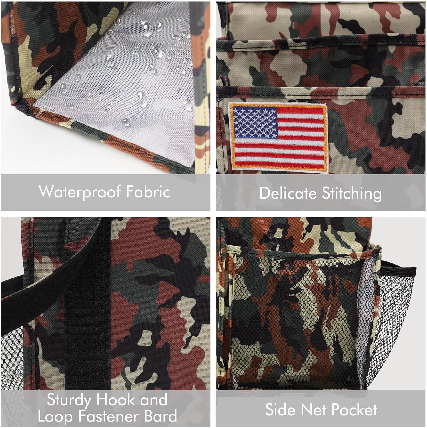 - Material-High Quality: The bedside storage bag is made of waterproof 600D oxford fabric, convenient hook and loop fastener, and durable dacron mesh.