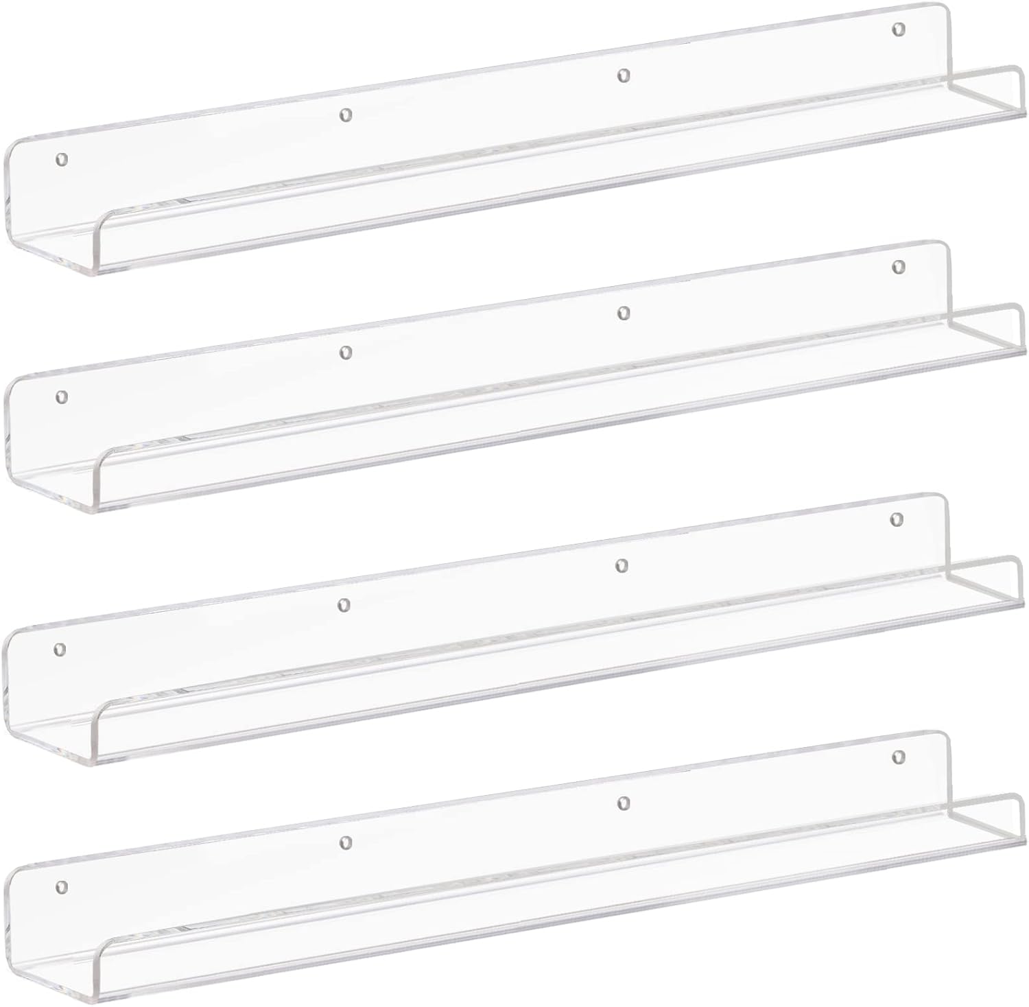 Weiai Clear Acrylic Floating Shelves 24 inches, Wall Bookshelf for Kids, Transparent Book Shelf Ledge for Wall, Set of 4
