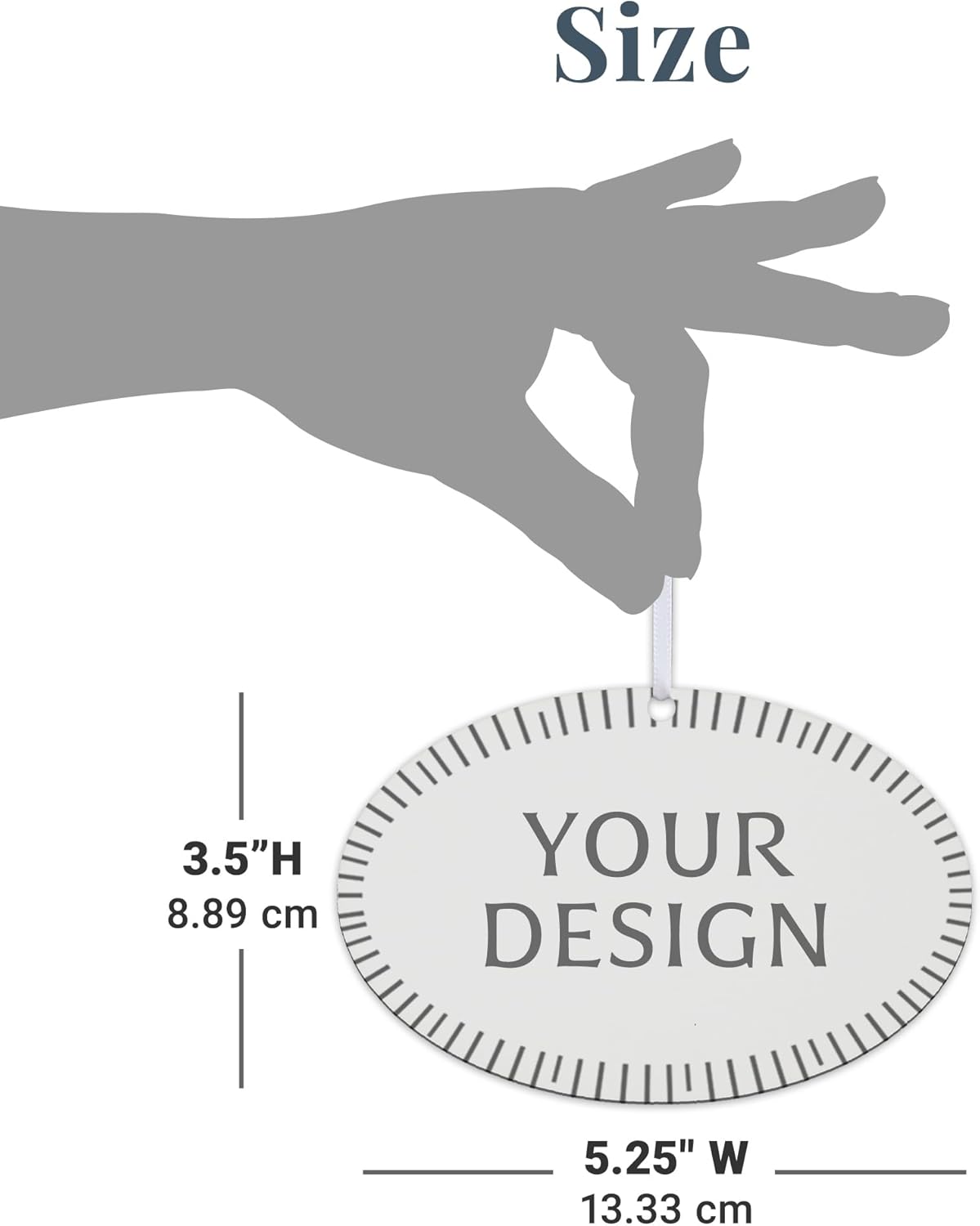 - PREMIUM QUALITY: Made of wood, this oval personalized ornament measures 3.5"Hx5.25"W. It's presented in a velvet drawstring bag ready for gift-giving and protective storage. Imported for final manufacture locally.