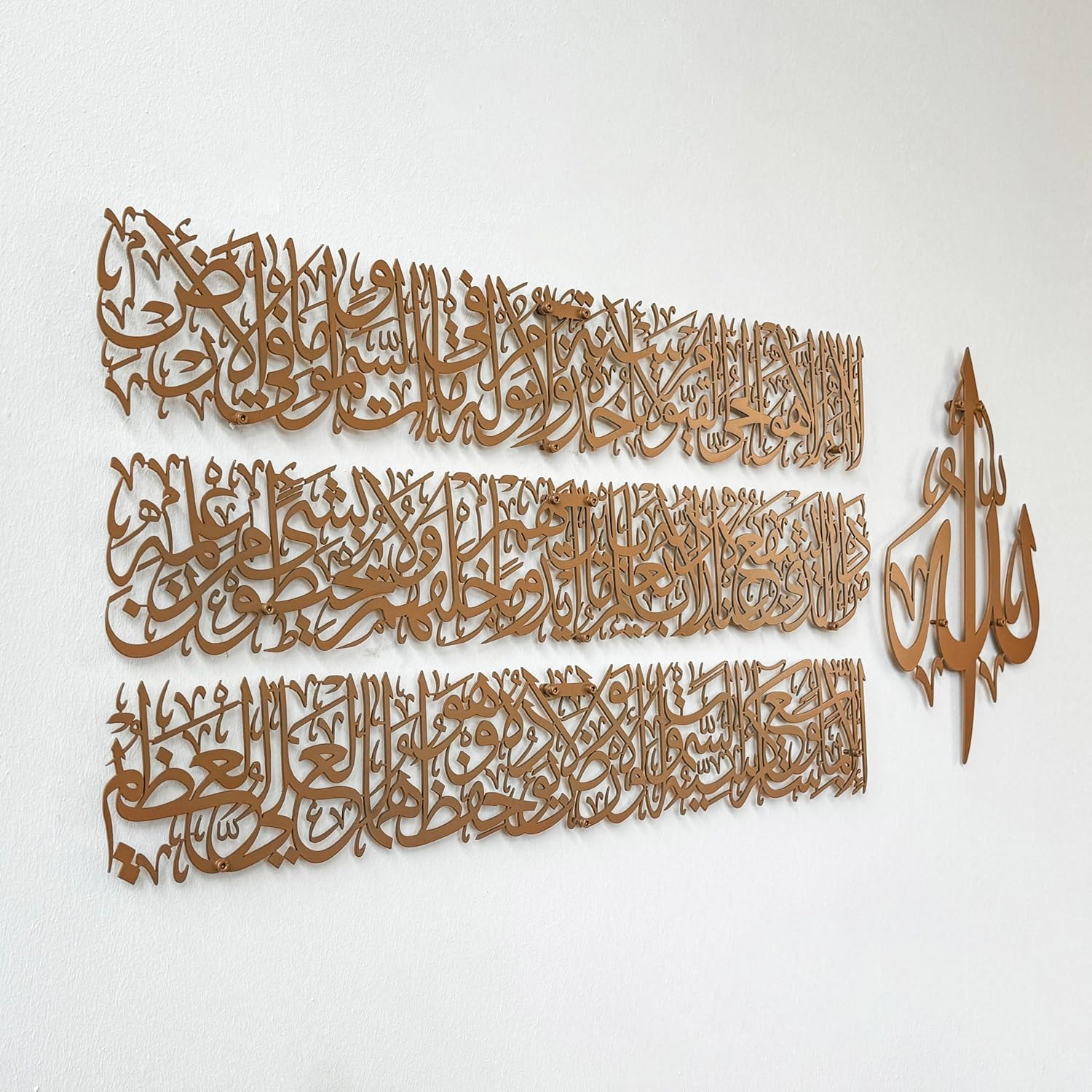 Modern Islamic Wall Art, Ayatul Kursi Metal Artwork, Perfect for Ramadan Decorations, Muslim Housewarming Gifts, Arabic Calligraphy Throne Verse Wall Decor, Ideal Eid Decor (Large, Matte Cooper)