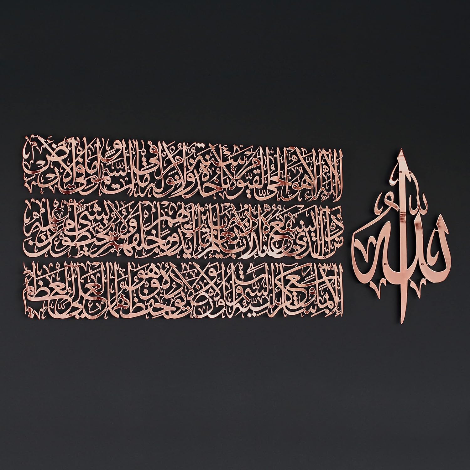 Modern Islamic Wall Art, Ayatul Kursi Metal Artwork, Perfect for Ramadan Decorations, Muslim Housewarming Gifts, Arabic Calligraphy Throne Verse Wall Decor, Ideal Eid Decor (Large, Shiny Copper)