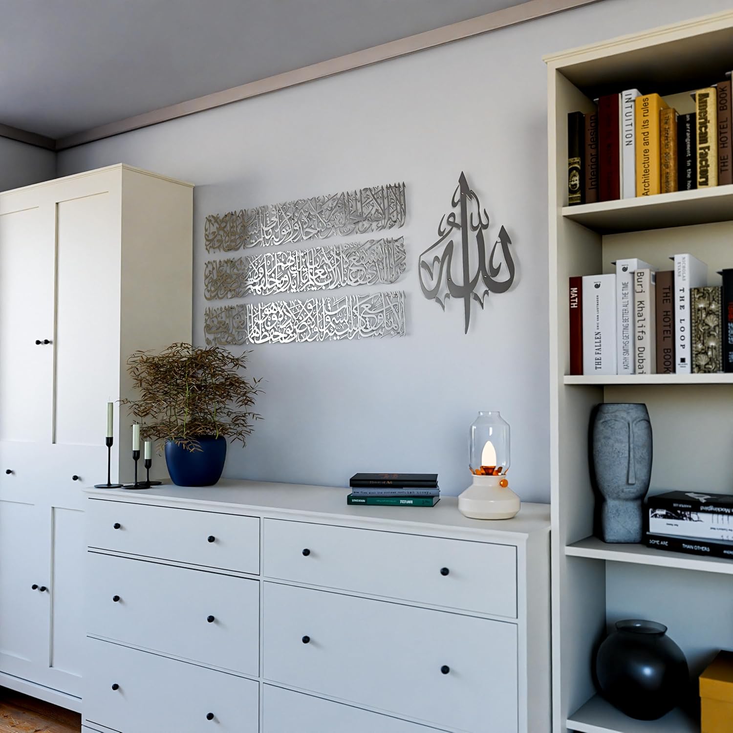Modern Islamic Wall Art, Ayatul Kursi Metal Artwork, Perfect for Ramadan Decorations, Muslim Housewarming Gifts, Arabic Calligraphy Throne Verse Wall Decor, Ideal Eid Decor (Large, Matte Silver)