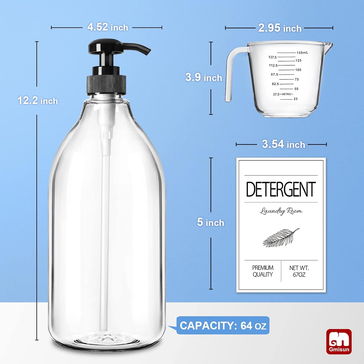 GMISUN Laundry Detergent Dispenser, 2 Pack Liquid Laundry Soap Dispenser, 64oz Storage Container for Farmhouse Laundry Room Decor, Liquid Bottle Organizer for Detergent/Softener/Bleach
