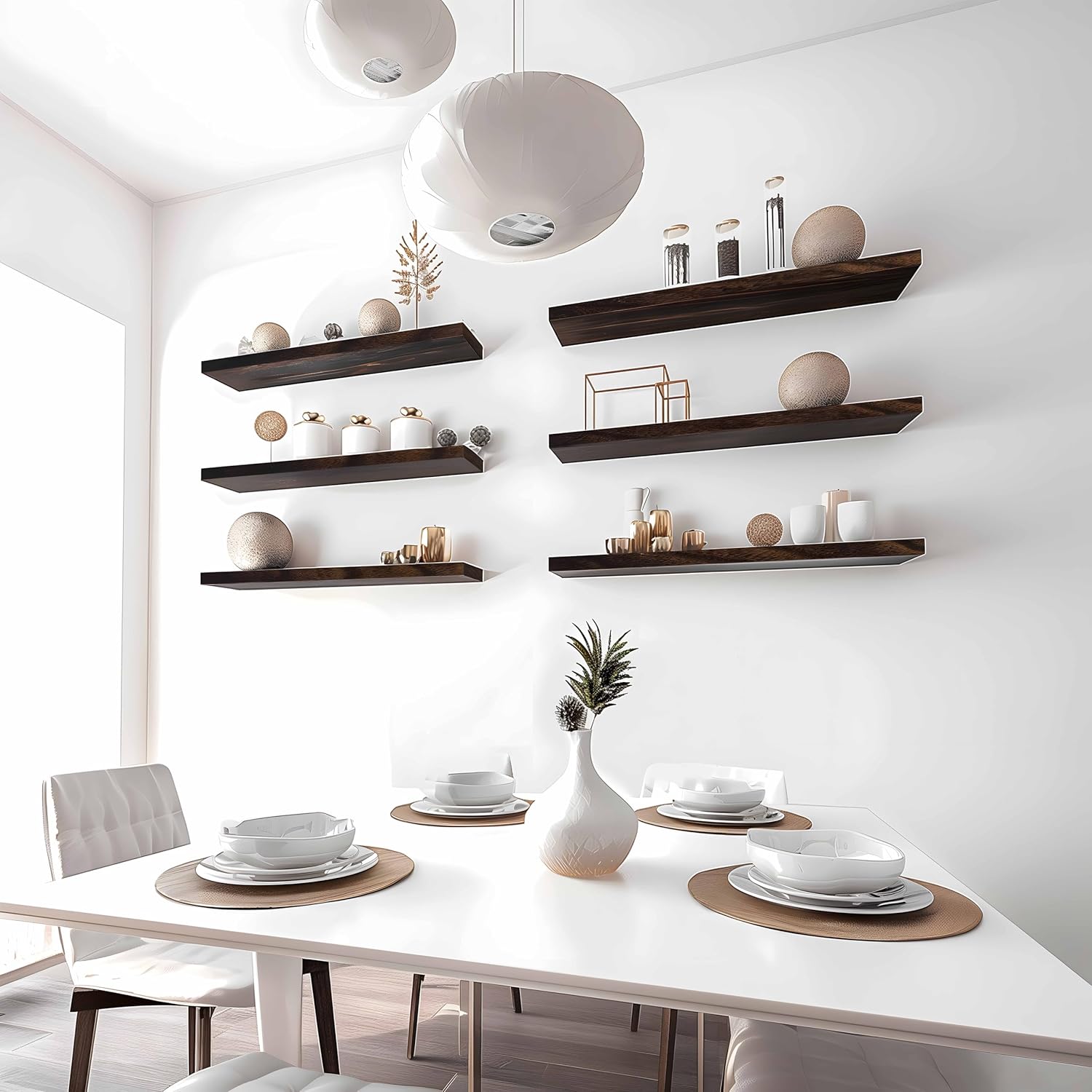 - Package Included - 4 floating shelf boards - 23.6 X 6 X 1 inch, 8 brackets, directions, wall anchors and screws.