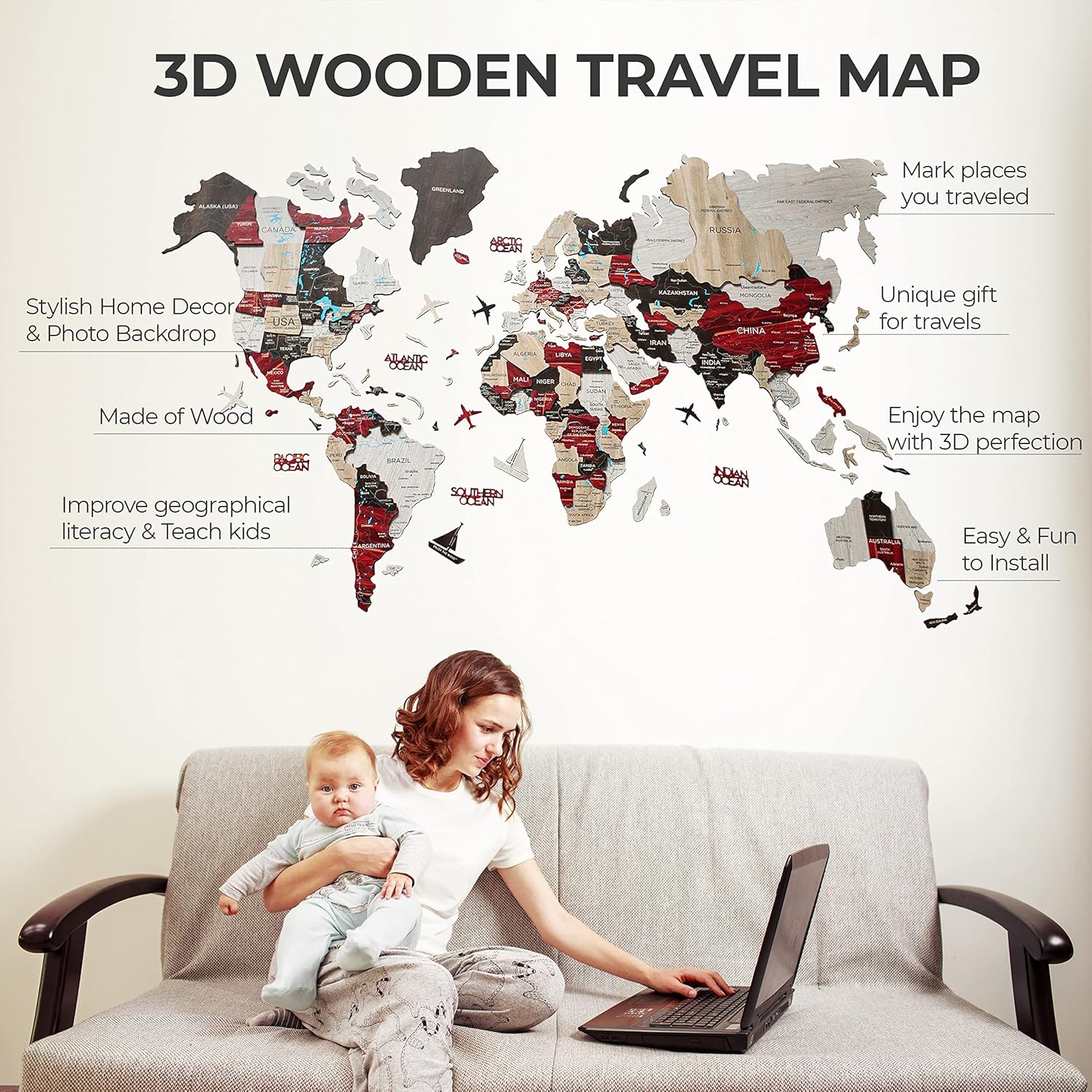- A Must For Travel Enthusiasts: Whether you’re a travelling afficionado or you simply enjoy the occasional DIY house project that adds elegance and style to your living space, the Awesometik 3d wall art travel map is the perfect choice!