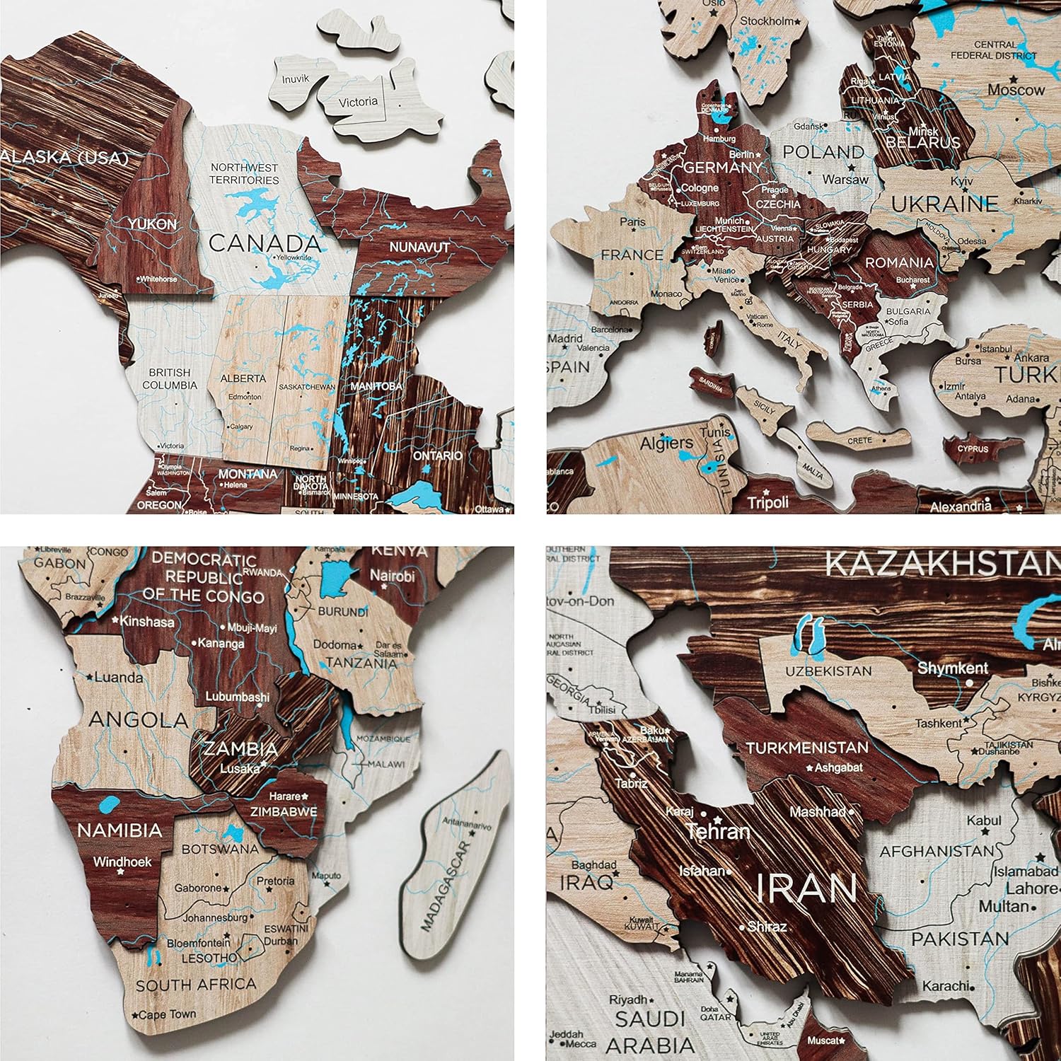 Handmade 3D Wood World Map Wall Art Large Wall Decor Track Your World Travels - Special For Home, Kitchen And Office (Medium, Cappuccino)