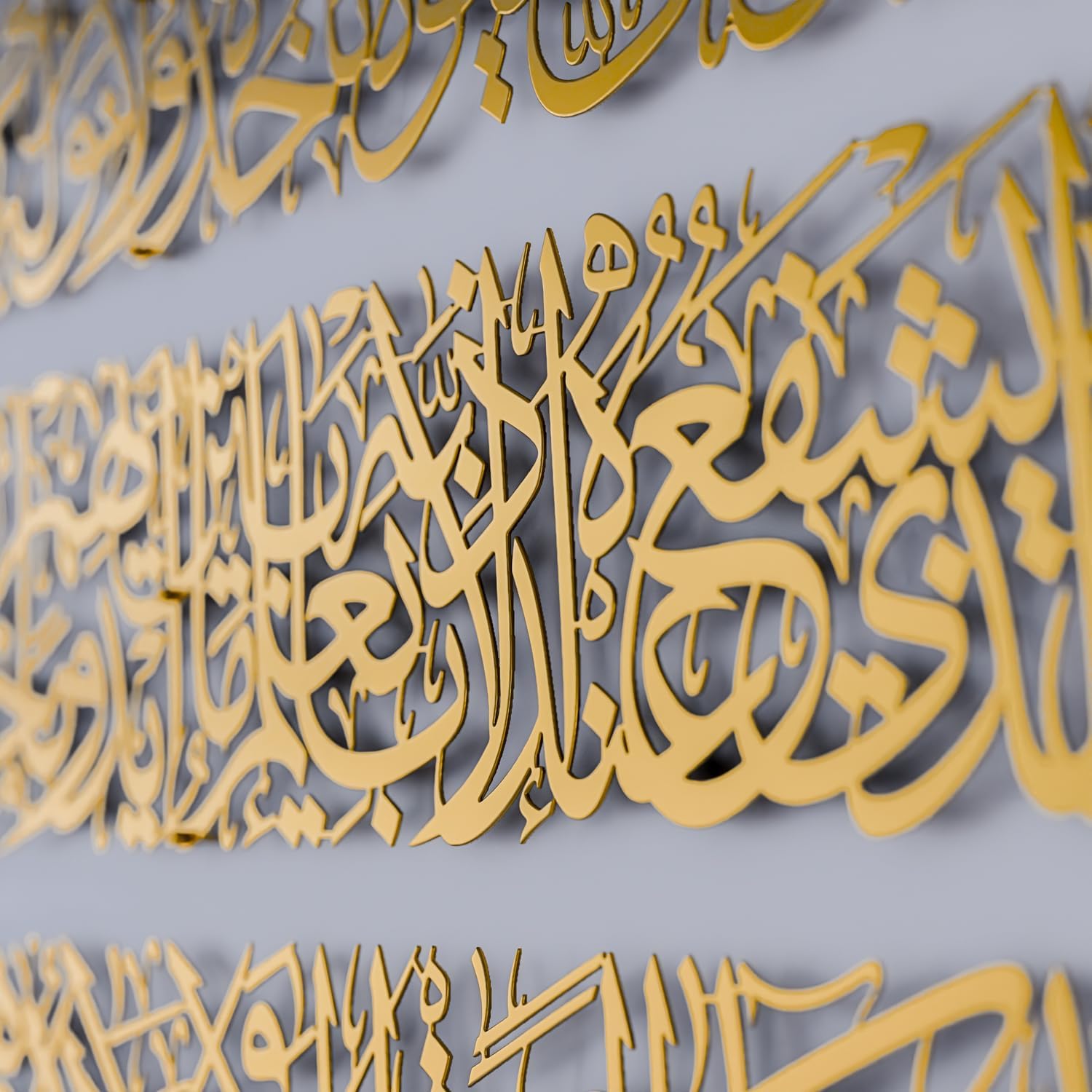 Modern Islamic Wall Art, Ayatul Kursi Metal Artwork, Perfect for Ramadan Decorations, Muslim Housewarming Gifts, Arabic Calligraphy Throne Verse Wall Decor, Ideal Eid Decor (Medium, Matte Gold)
