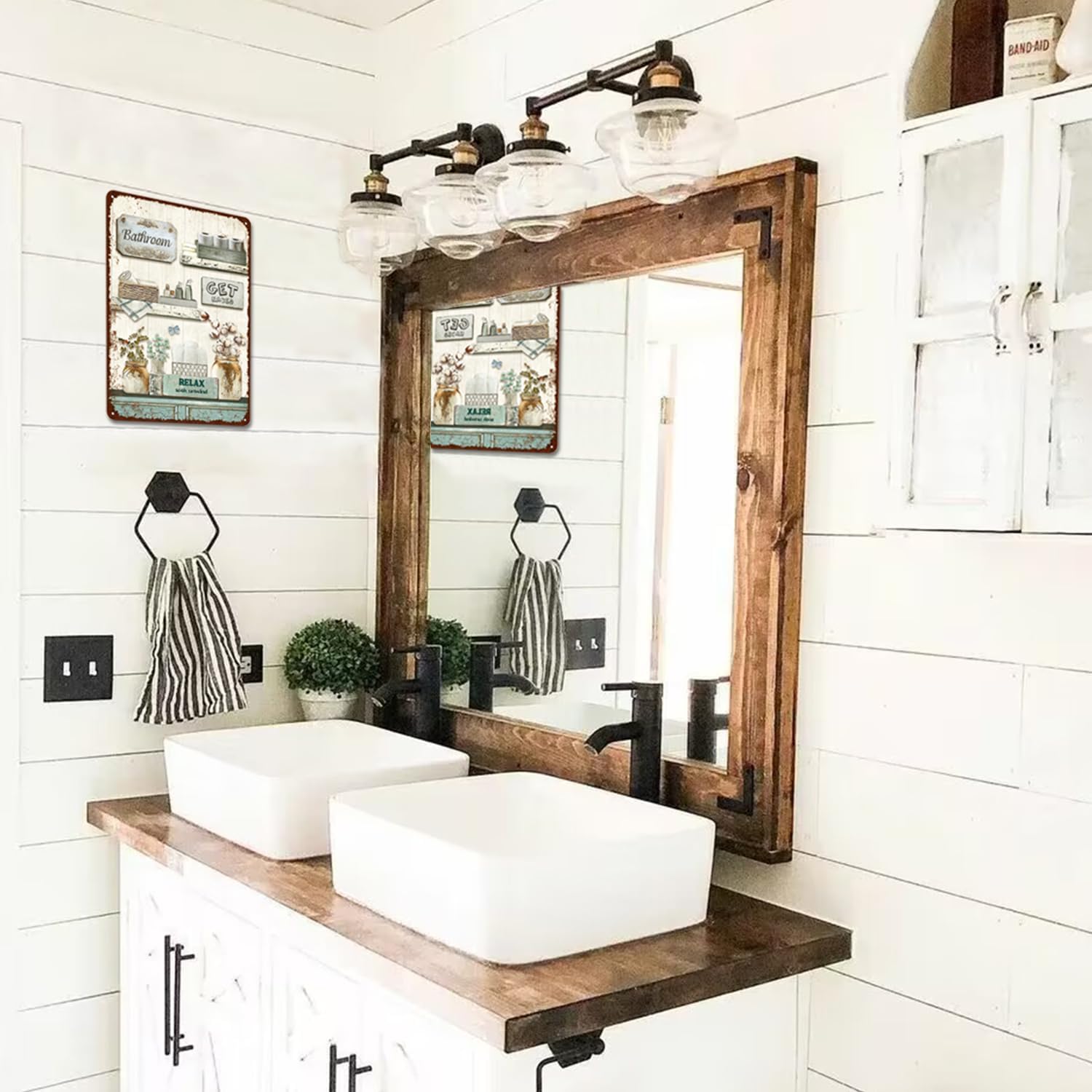 Vintage Farmhouse Bathroom Metal Tin Signs Rustic Flower Country Wall Art Decor 8X12 Inches