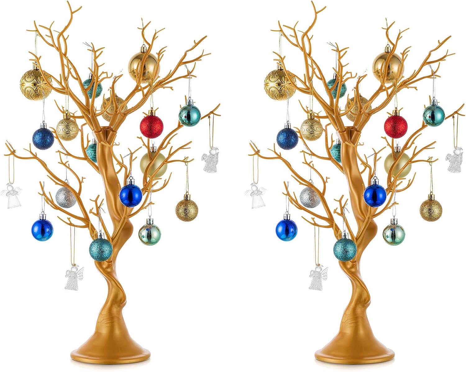 - Package includes: 2 piece 22.8 inches artificial christmas tree ( Include 2 Truck & 32 Branch). Please note that all the ornaments are not included! This tree centerpieces for tables also can be as an ornament display tree, artificial tree for centerpiece, table top trees, wishing tree, easter egg tree, Halloween tree, jewelry display, family tree, money tree gift holder, ornament display stand etc.