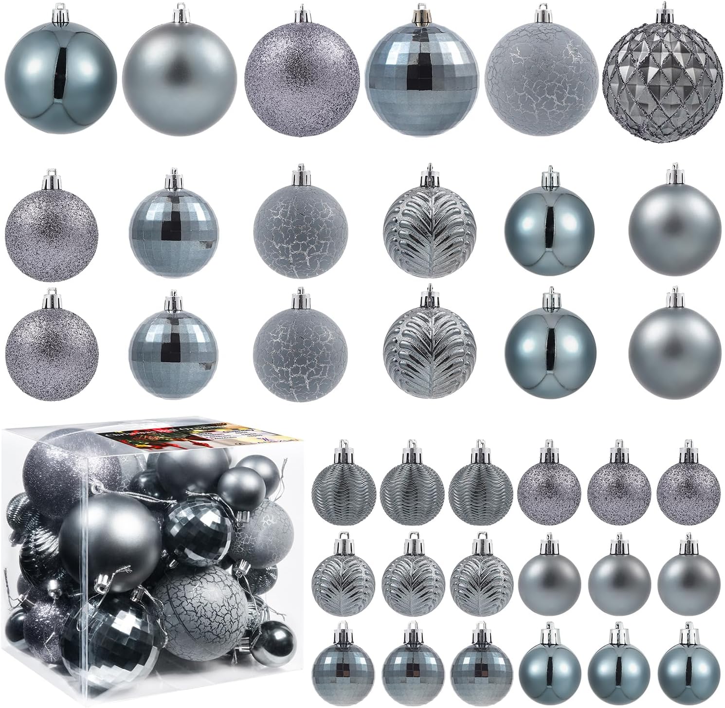 LANGXUN 36pcs Gery Christmas Tree Decorations Balls, Bolas De Navidad, 2025 Christmas Decor, Indoor Outdoor Shatterproof Christmas Ornaments, Xmars Party Wedding Suppiles