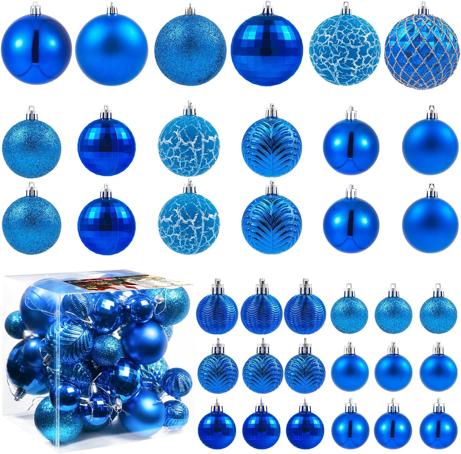 - Diverse Decorations - Our Christmas balls come in various finishes, including matte, crackle, glitter, disco, shimmering, and patterned designs. Accented with classic textures and done with a smooth, sophisticated finish, these dazzling Christmas ornaments will add shine and sparkle to your christams tree decoration. Fill up your Christmas tree, wreath, or centerpiece with these beautiful ornaments.