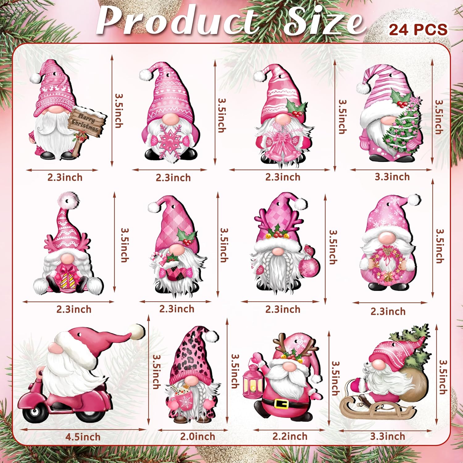 - New Designed Christmas Gnome Wooden Ornaments -- 24 PCS gnome wooden slices with exquisite workmanship in 12 different styles are made of high-quality wood, painting in front and empty at back.