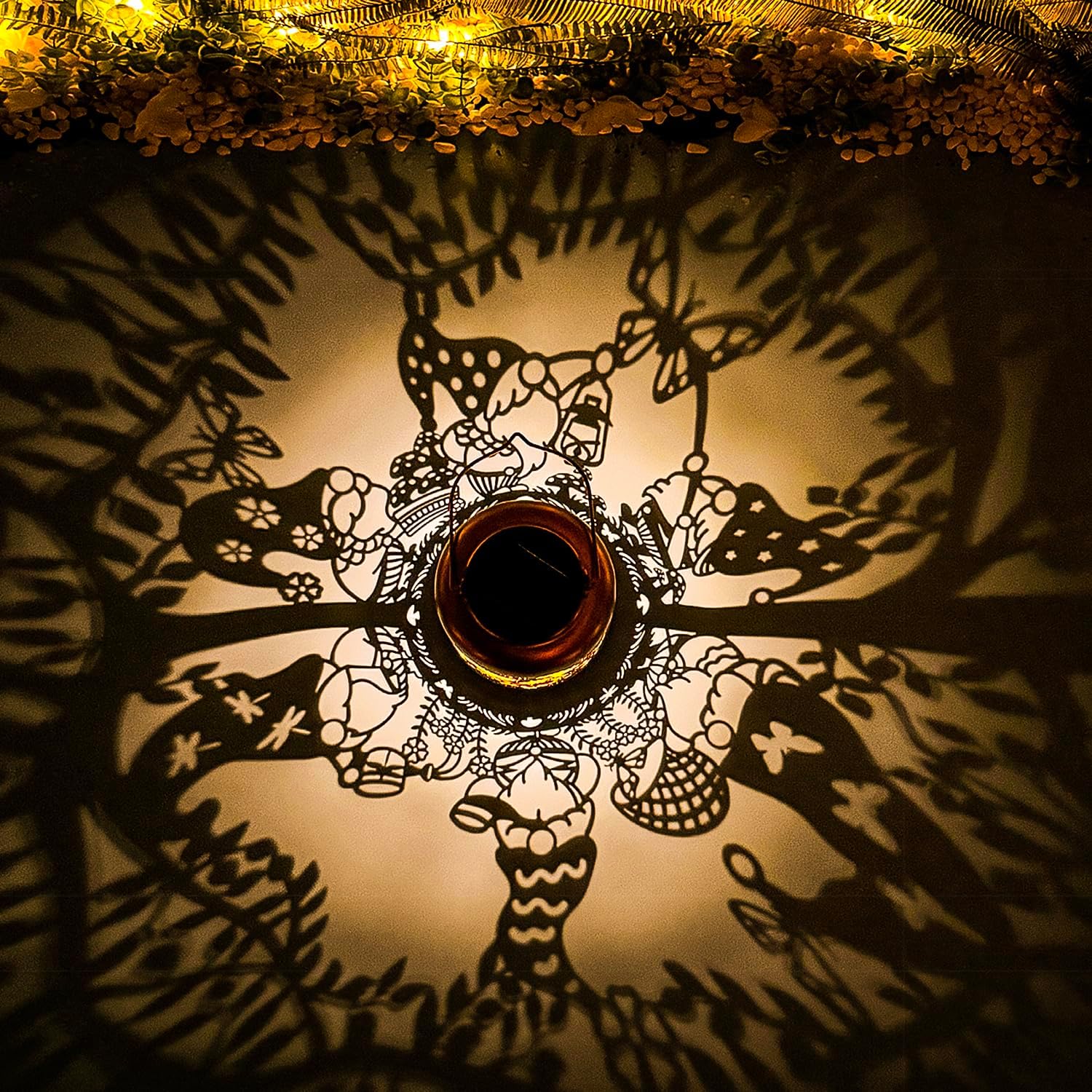 - 【Perfect Garden Decorations】Garden Gnomes solar lantern can project unique and beautiful patterns in a dim environment,creating a gorgeous and warm atmosphere to bring life and fun to your garden and attract your family or friends.The unique hollow out design and beautiful antique bronze color give it an artistic touch,perfect for decorating gardens,backyards,corners,Outside,sidewalks and many other scenes