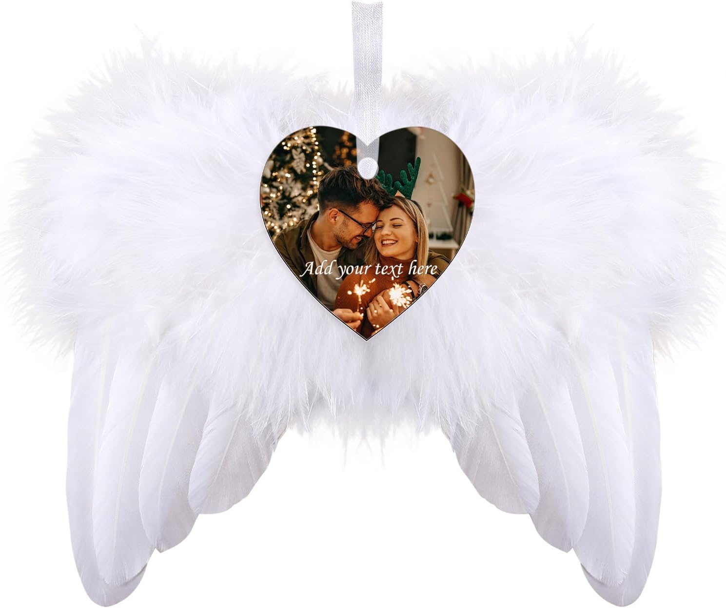 Personalized Christmas Ornaments 2025, Angel Wings Custom Photo Text Hanging Ornament Customized Christmas Tree Decorations Gift for Family, Kids, Friends, Couples, Wedding