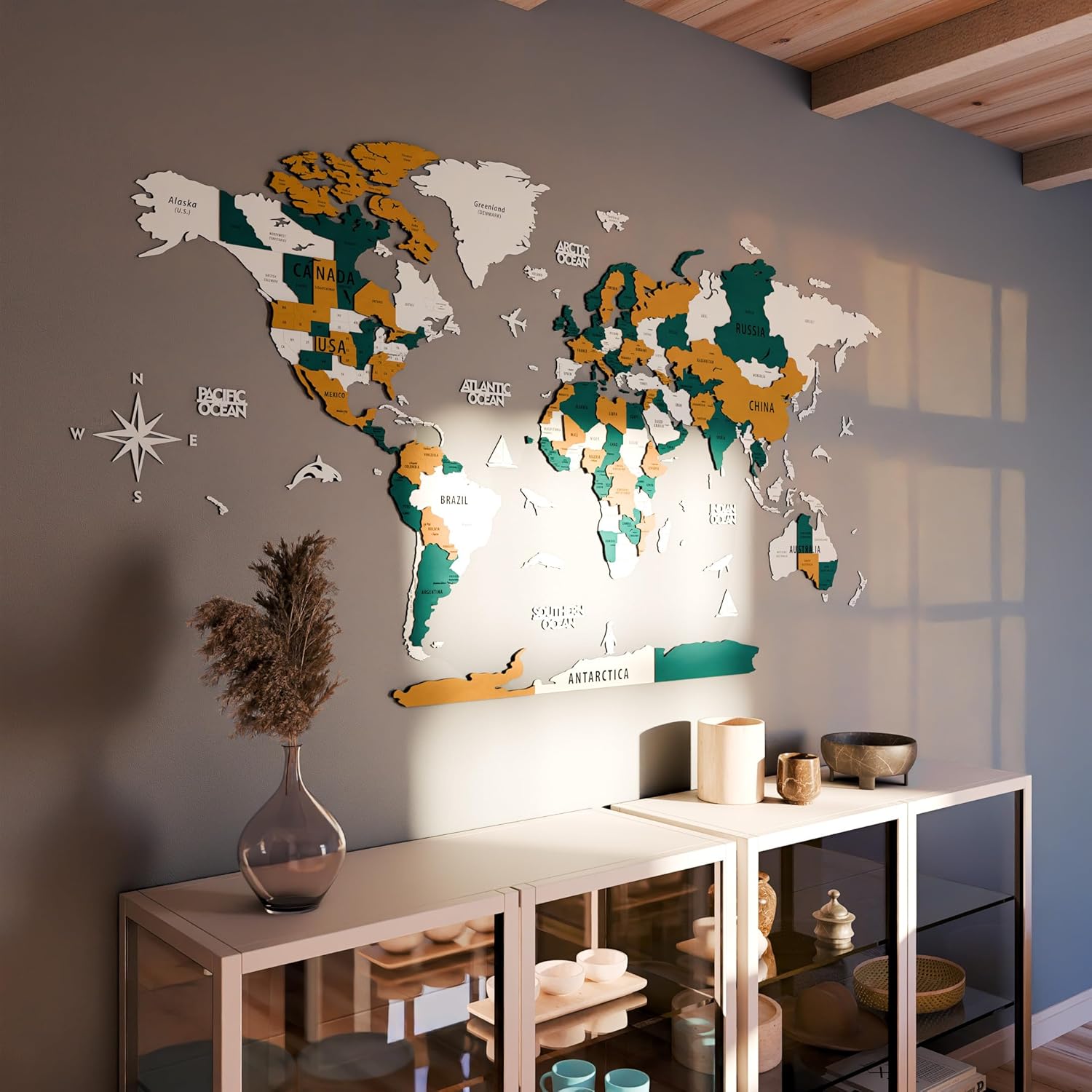- 3D MULTILAYERED WOODEN - This world map will be the center of your homes, offices for many, many years to come! Great decor alternative for your living rooms, dining rooms, offices, kid's rooms.