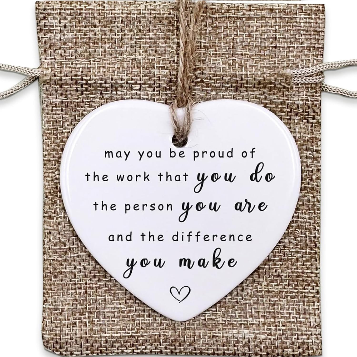 Thank You Ceramic Heart Ornament - May You Be Proud of The Work You Do, Leaving Gift, New Job, Coworker, Retirement Goodbye Farewell Appreciation for Teachers, Nurses