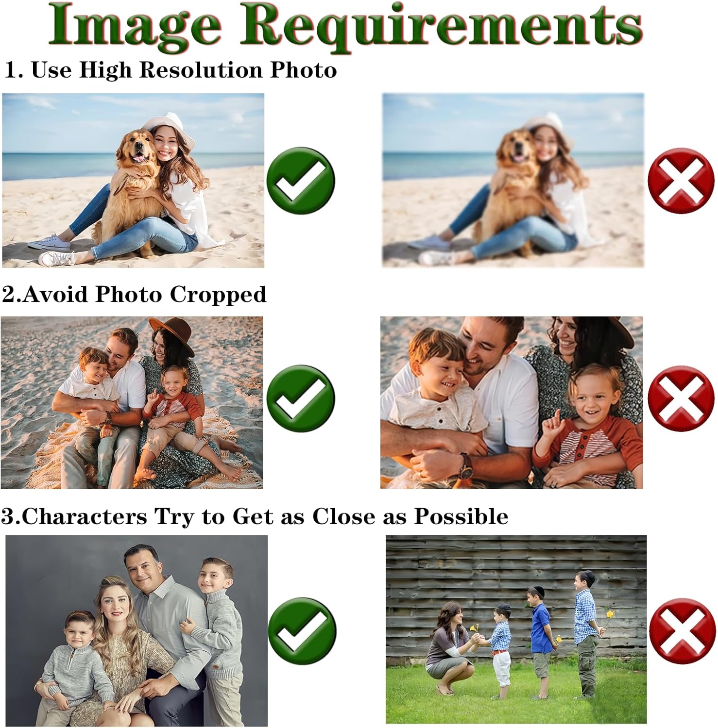 - Important Tip: To ensure the best results, we recommend selecting pictures that are not cropped or affected by significant sunshine flares, as these factors may impact the clarity and vibrancy of your ornament. By choosing the right photo, you'll create a stunning keepsake that beautifully encapsulates the essence of your special moments during the festive season.