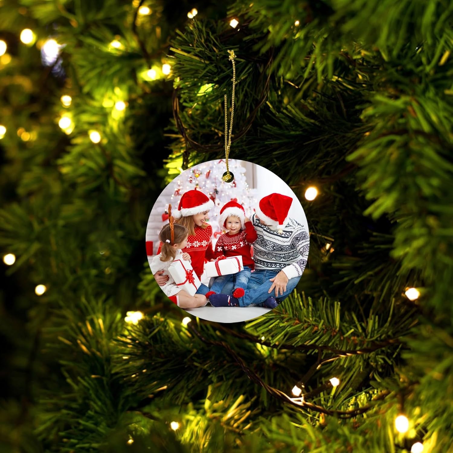 - ❄️❄️EXCELLENT QUALITY:Personalized ornaments 2025 are made of high-quality ceramics, which can print different patterns on both sides for you.Customized Christmas ornament is lightweight, the printed text and picture is not easy to fade, and have a good hand feel.Personalized photo ornaments are the best home decorations to hang on the Christmas tree.Christmas photo ornaments can also be used for Adds a touch of warmth to your home