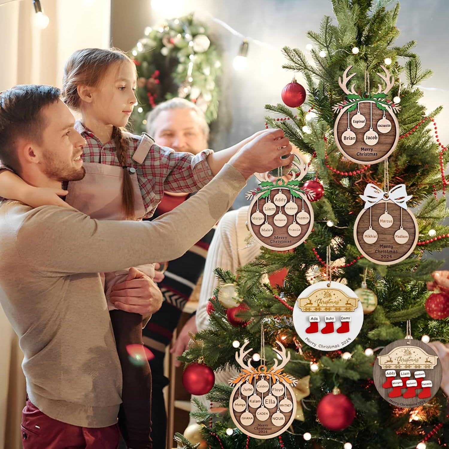Personalized Christmas Ornaments 2025 with Family Names Custom Wooden Ornaments for Christmas Tree Personalized Ornament Gifts (1-10 Names)
