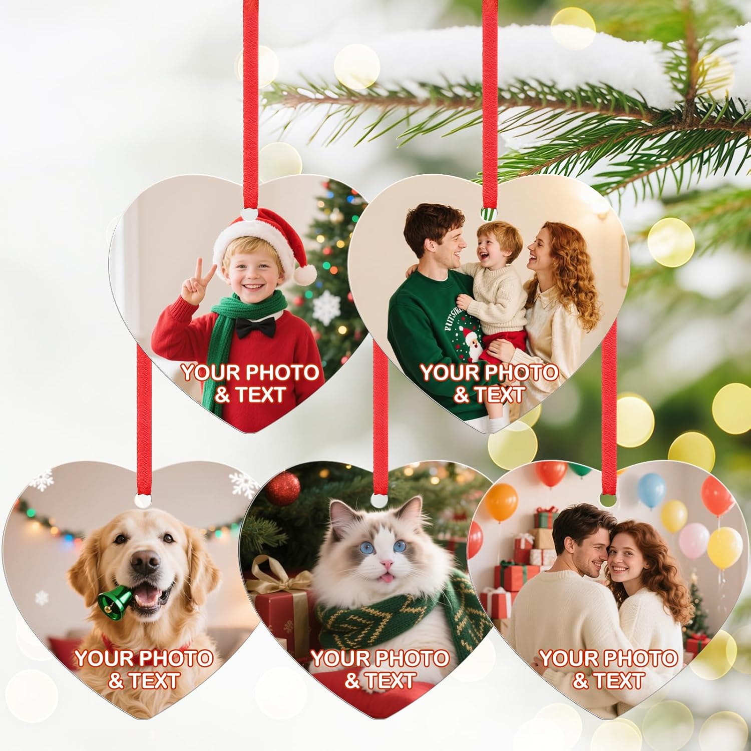 - DOUBLE SIDED PRINTING ORNAMENTS - The Christmas ornaments are made of high-quality coated aluminum, which can print different patterns on both sides for you. Its high-definition printing ensures clear and upscale appearance, preventing pictures from fading. This custom photo Christmas ornament is a lasting keepsake to remember your unforgettable holiday forever.