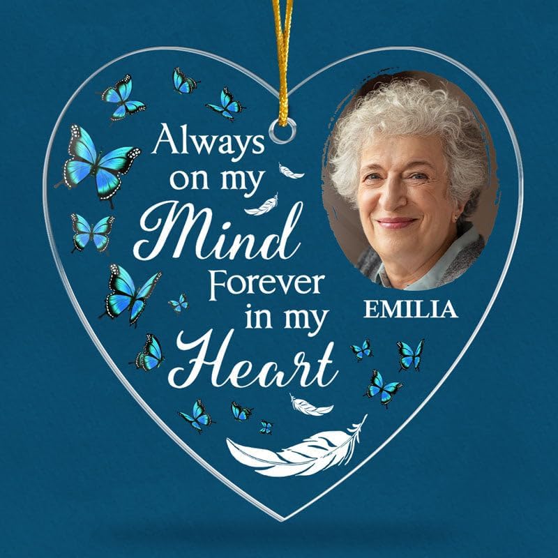 - š Memorial Christmas Ornament: The ornament is crafted from acrylic, measuring 3.9x3.9 in (10x10 cm) in size and 0.12 in (~0.3 cm) in thickness. It features a one-sided design. You can choose what is printed on these personalized Christmas ornaments! This ornament will be the best Christmas gift for your family members, memorial gifts for loss of loved one, gifts for grieving friends, thanksgiving ornaments for tree.