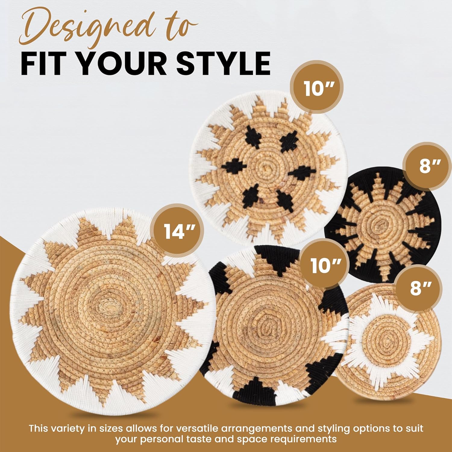 Tebie At Home Boho Wall Art - Boho Wall Baskets Decor - Handmade Set of 5 Woven Baskets With Seagrass - Flat Elegant Art for Farmhouse and Rattan Decor for Living Room, Bedroom and Office