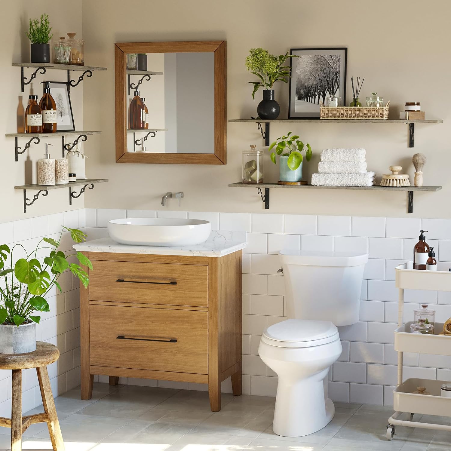- ăWell MadeăMade of premium particleboard and expertly designed metal brackets, sturdy and durable. Thicker brackets bring added stability and stronger load-bearing capacity(up to 33lbs), supporting the wood shelves without sagging over time. All edges are well-finished for smoothness