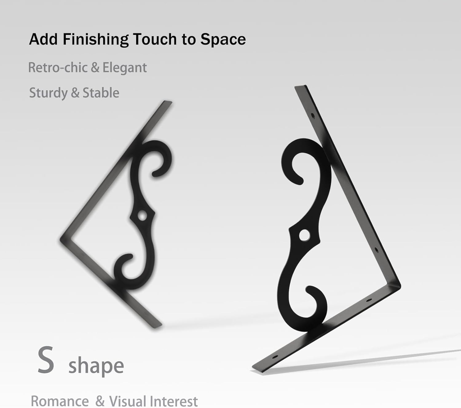 - ăAdd Finishing Touch to SpaceăMid-century design adds a retro-chic vibe to your home. Rusticity wood grain and exquisite S-shaped iron brackets flaunt visual interest and romance. They are full of character and enhance the texture of the space. A classy way to display your beloved decorations