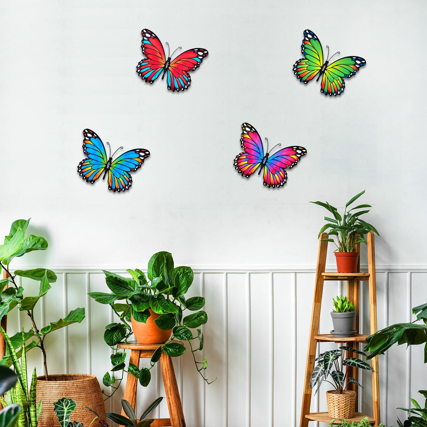 Oraytteo Metal Butterfly Wall Decor, 4pcs Butterflies Wall Art Hanging Sculptures for Outdoor Indoor Fence Patio Yard Tree Garden Home Decorations, Housewarming Gift for Mom Friends