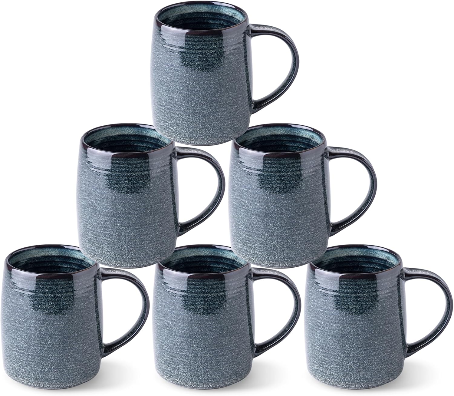 - LARGE HANDLE WITH BEAUTIFUL REACTIVE GLAZE : These coffee mugs features a large open handle that provides a comfortable and secure grip. The handle remains cool even after microwaving, and the beverages stay warm, feature a unique reactive glaze finish, each piece with handcrafted decorative is beautifully individual, adding a touch of sophistication to your table setting