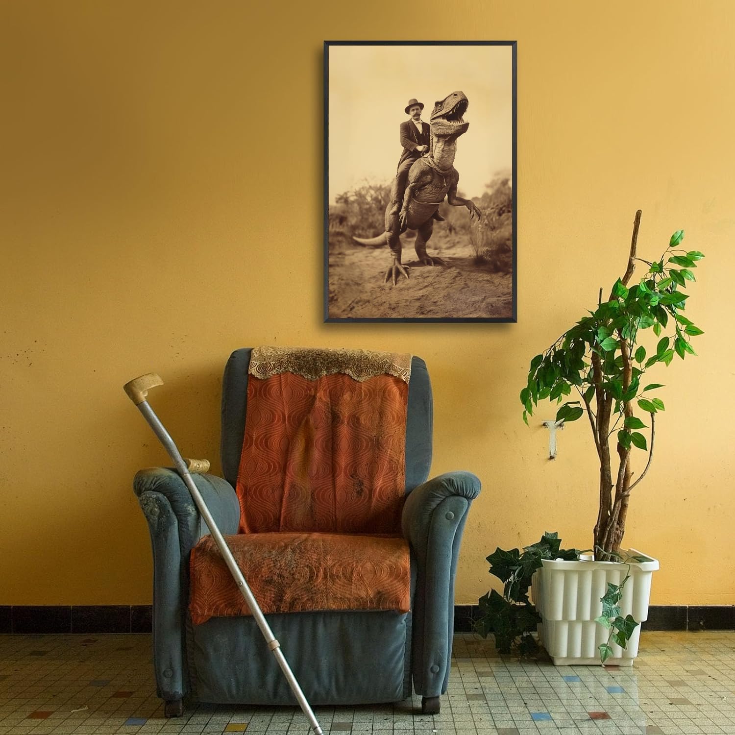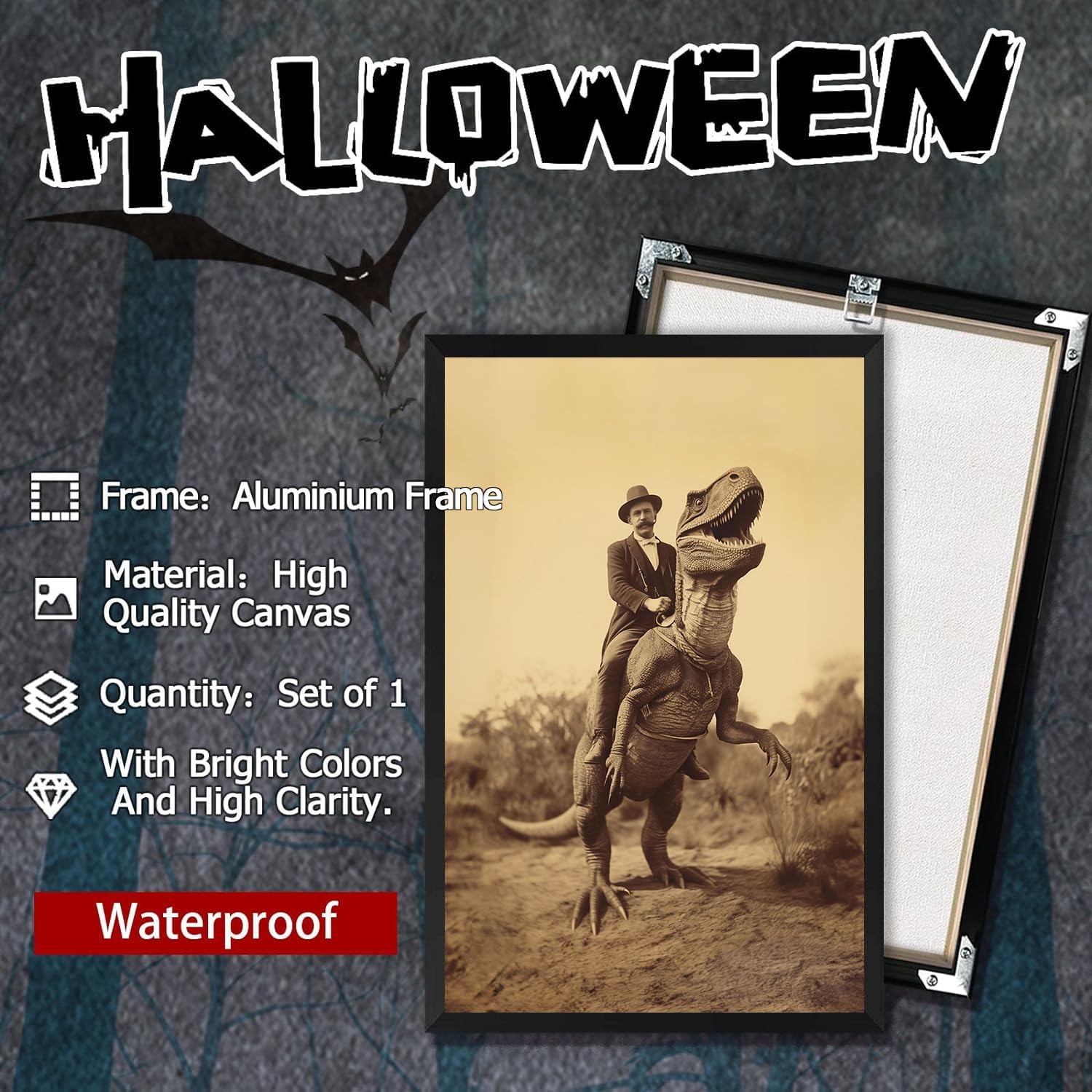 Generic Goth Decor Antiqued Wicca Art Poster Dark Academy Dinosaur And Cowboy Canvas Wall Art Horror Posters Spooky Indoor Art Family Bedroom Office Space Decor 16X24inch Aluminum Framed