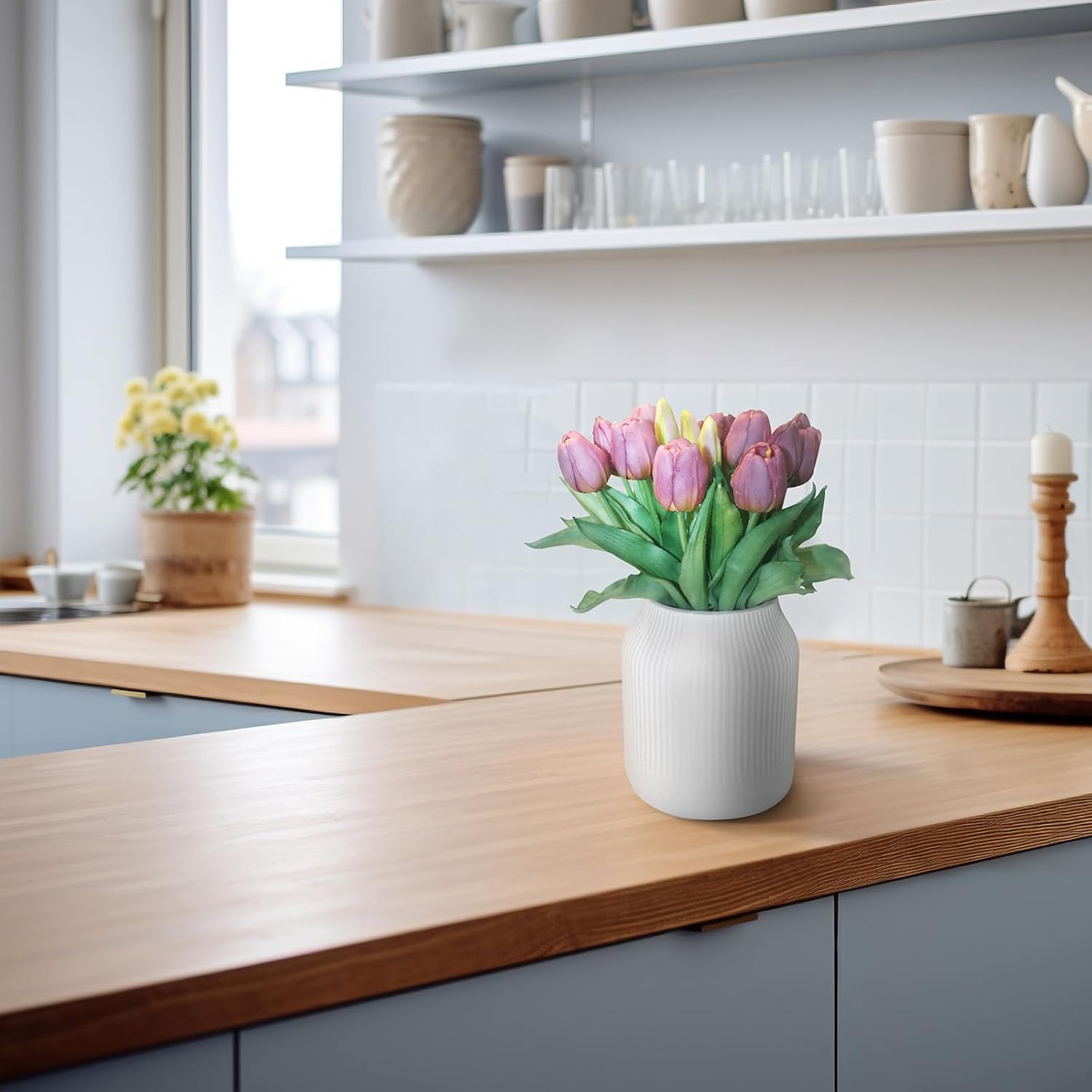 - [No season restrictions]: Artificial tulips that look real have the beauty of real flowers without maintenance or season restrictions. They are a practical and versatile decorative option that, in addition to enhancing your living space, make creative gifts for friends and family.