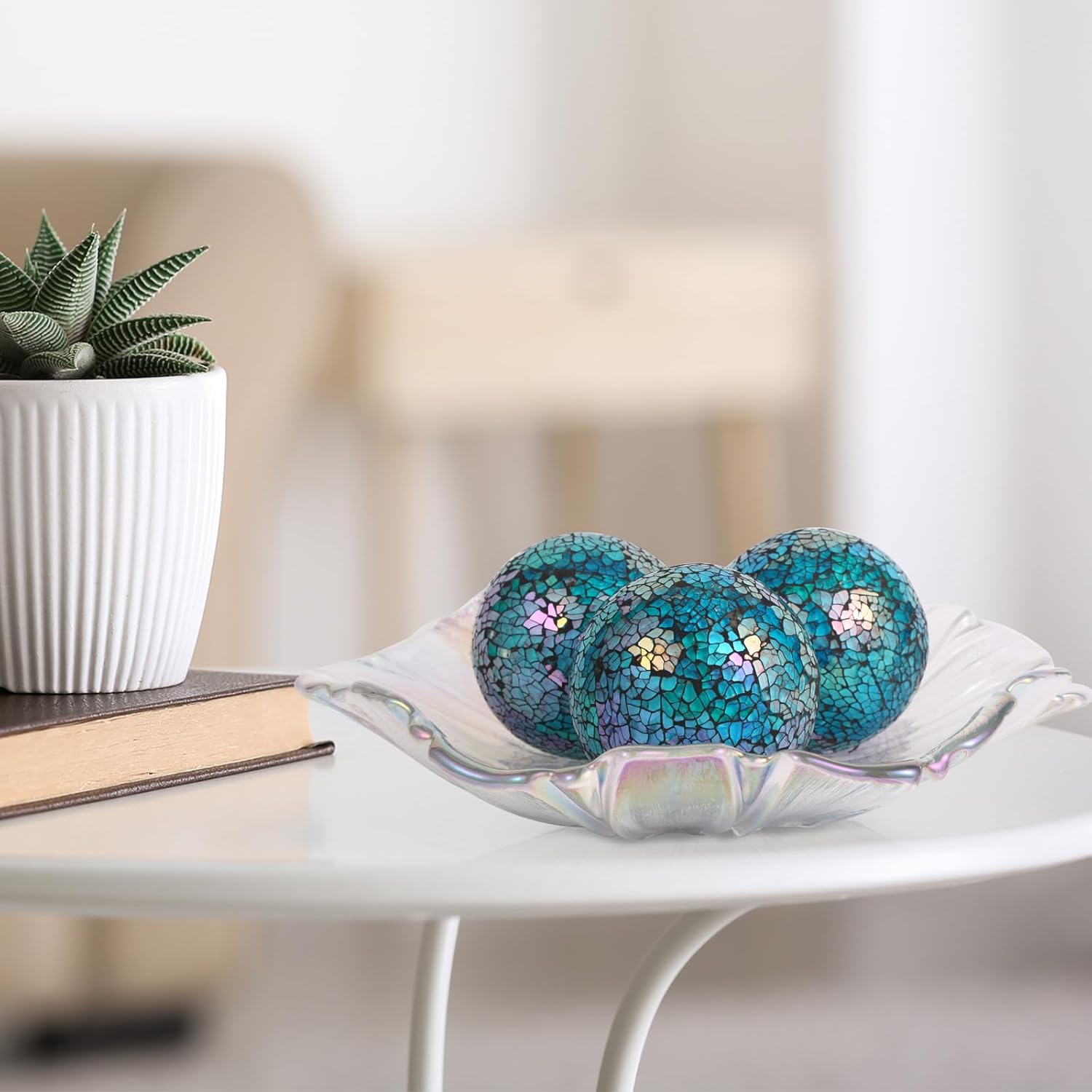 - PERFECT DESIGN: The glass decoration ball is mosaic style. The carefully designed glass mirror can reflect light from different angles, and you will be amazed by viewing it from any angle. These decorative balls are full of modernity, decorating them in your home can create a unique atmosphere and reflect your good taste.