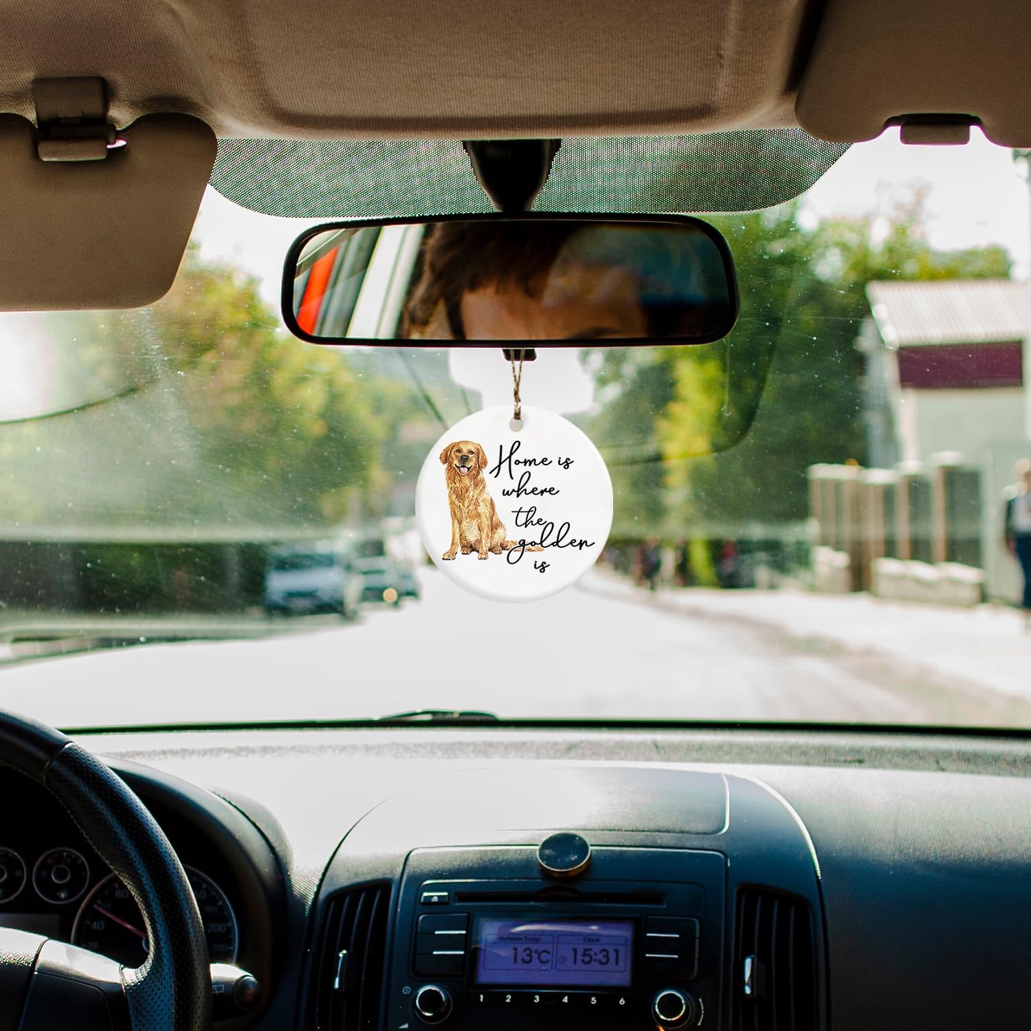 Golden Retriever Decor Gifts Ornament, Home is Where The Golden is Ceramic Christmas Ornament Keepsake Sign Plaque