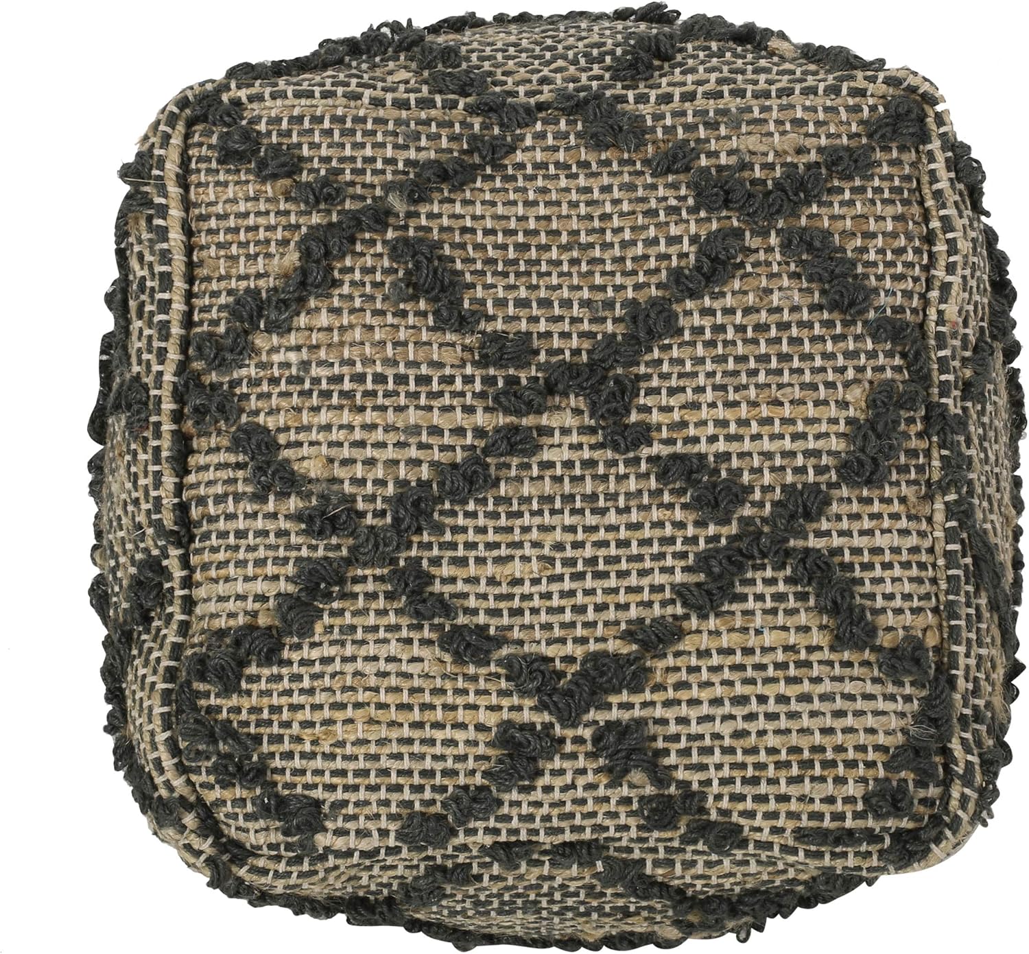 GDFStudio Boho Handmade Fabric Cube Pouf Ottoman Foot Stool - Bean Bag Floor Chair - Foot Rest Couch for Living Room Bedroom,Charcoal,16"" x 16"" x 16"", Cimarro,charcoal, 313838N