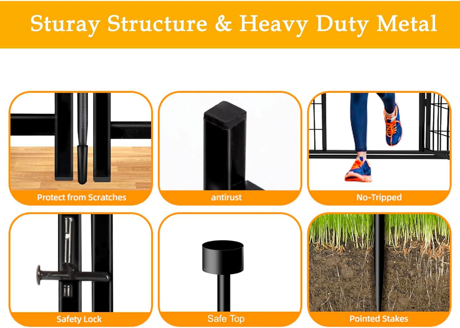 - Wide Application: This Metal Fence Is Suitable as A Garden, Lawns, Vegetable Garden Borders, and Path Edge Fences. It Can also be Used Indoors as Your Pet's Fence, and The Bottom of The Pole Is Fitted with An Anti-friction Sleeve That Won't Scratch Your Floors. Can also be Used as An Outdoor Pet Fence When You're Traveling or Camping
