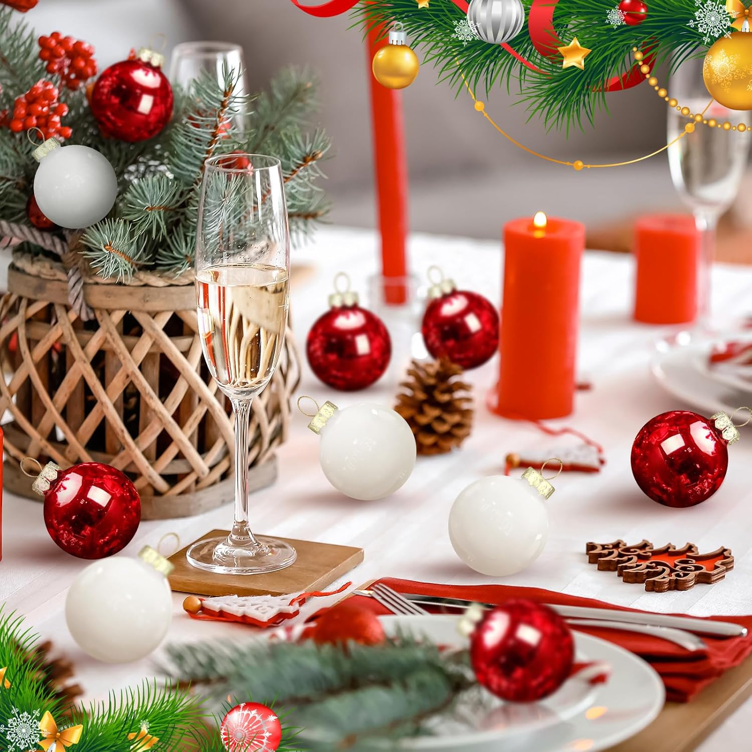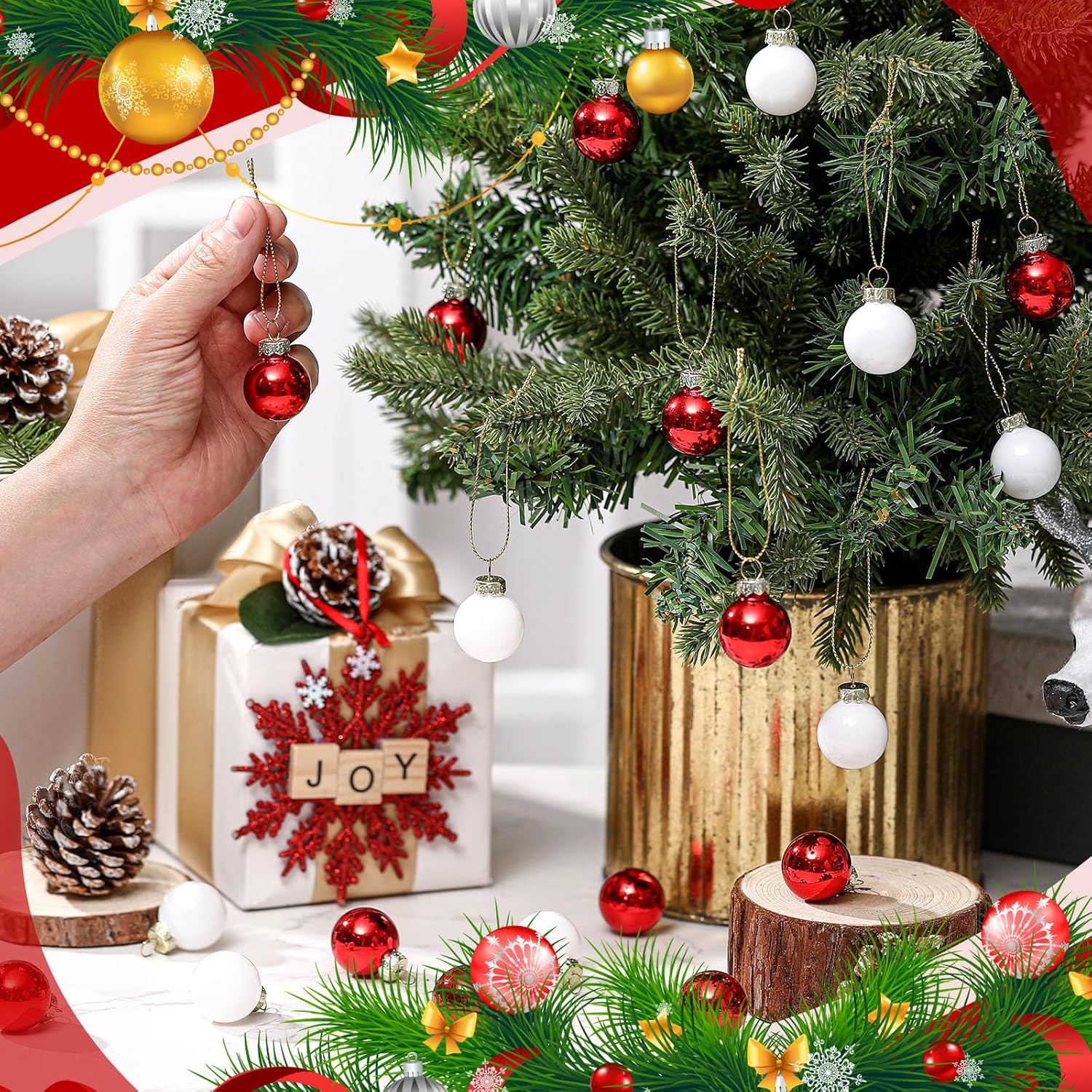 Tioncy 32 Pcs 1 Inch Mini Glass Christmas Ornaments Balls Shiny Christmas Balls Tiny Tree Hanging Decoration Small Colorful Ball Pendant for Xmas Party Supplies(Red, White)