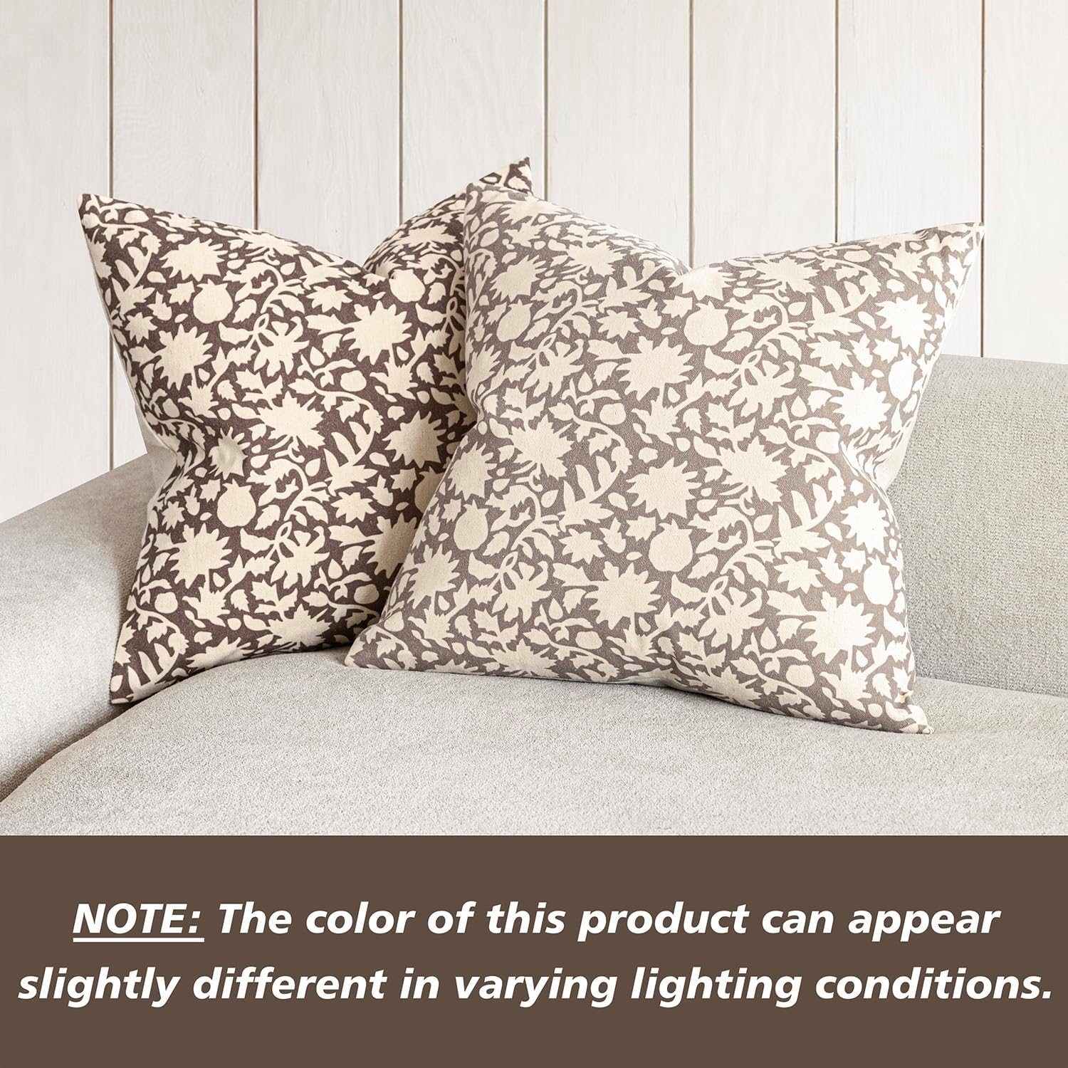 Foindtower Set of 2 Decorative Neutral Floral Throw Pillow Covers Accent Farmhouse Cushion Covers Boho Vintage Pillowcase for Couch Sofa Bedroom Living Room Home Decor Outdoor,22×22 Inch,Brown