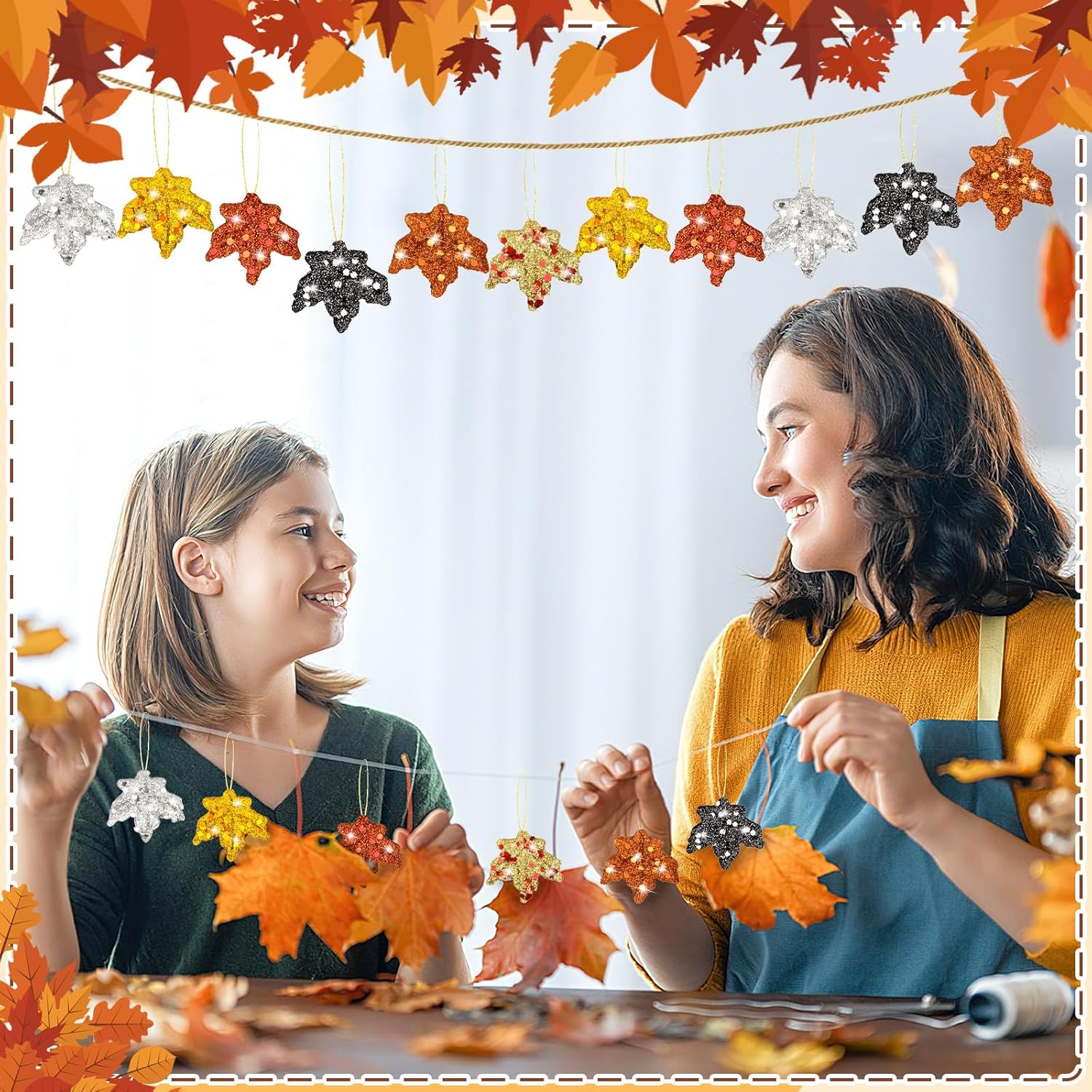 - Good-Quality Material: These foam maple ornaments are made of foam, light and have good durability. The Thanksgiving glitter maple leaves have sparkling powder on the surface, which makes the mini hanging fall leaves more dazzling in the light