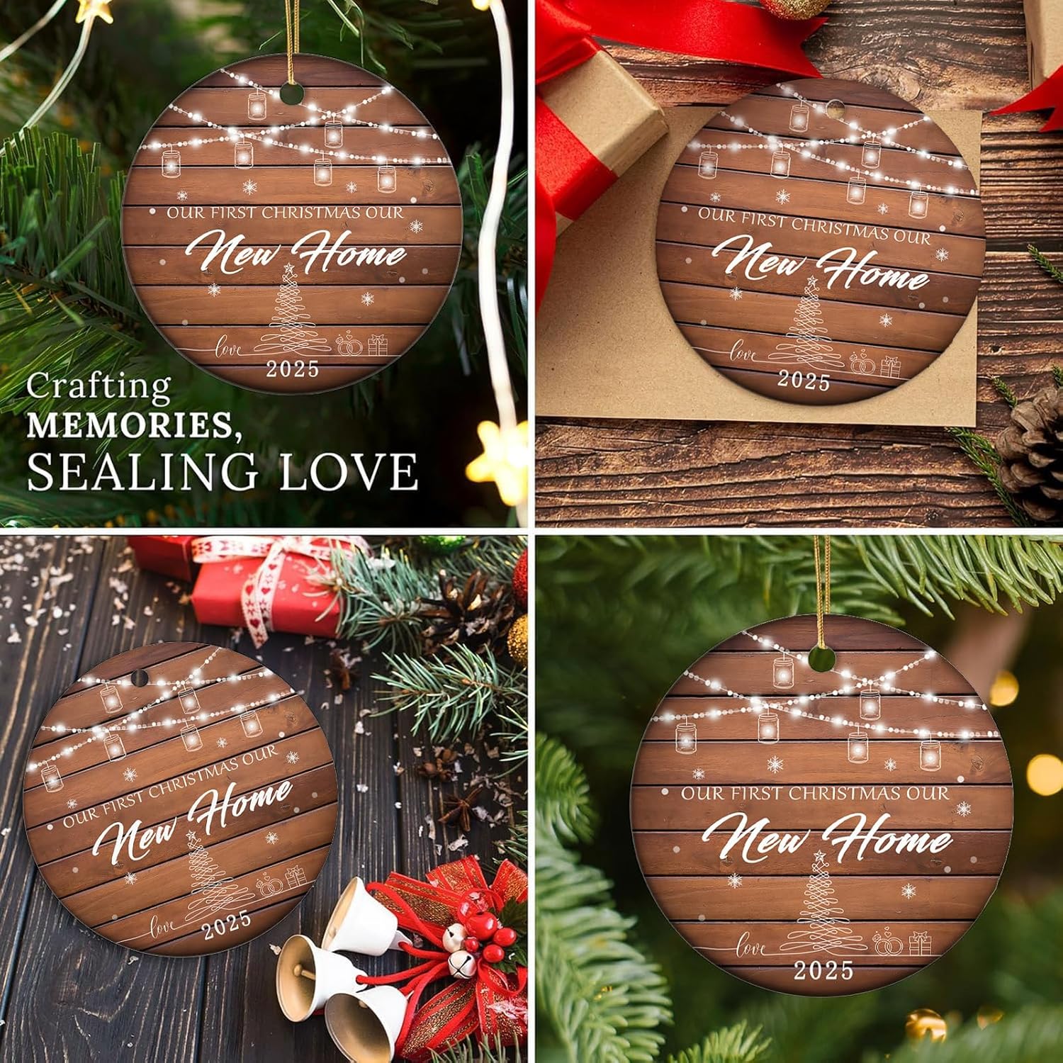 - 【Premium Material】Made from premium ceramic, this our first home ornament 2025 is designed for durability and lasting beauty. The dual-sided printing features intricate designs that are clear and vivid, ensuring the colors remain bright over time. This premium material of new home Christmas ornament 2025 adds an elegant touch to any Christmas tree.